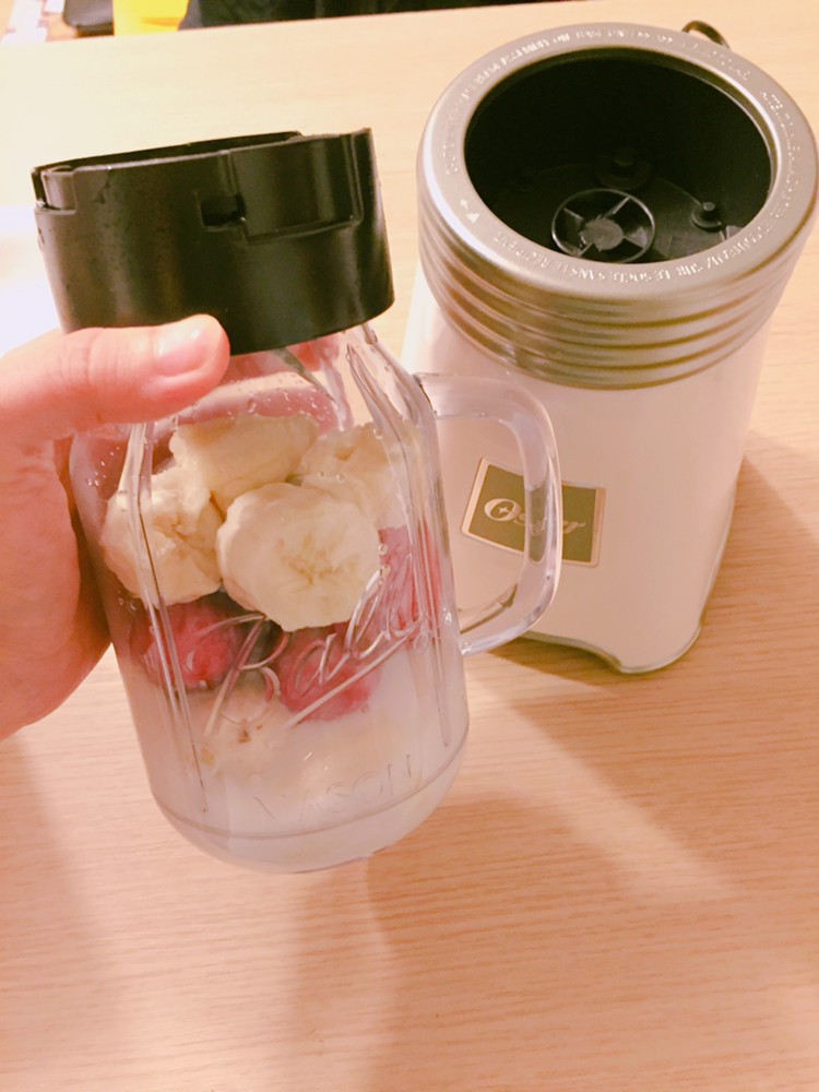 딸바- 바나나1.5개 + 냉동딸기 5알 +우유 적당히