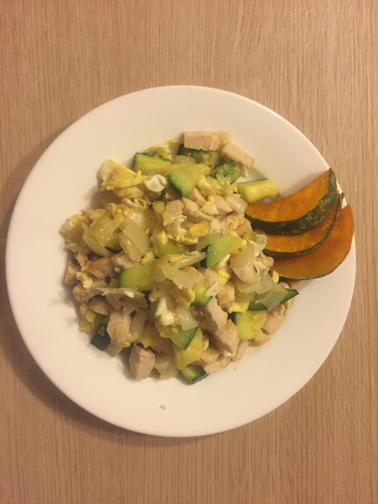 저녁-호박소시지볶음 통밀베이글