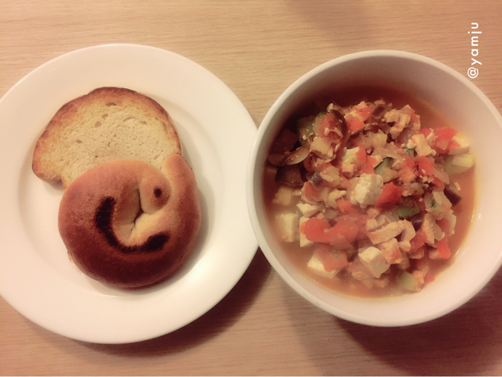 저녁-베이글과 토마토야채슾