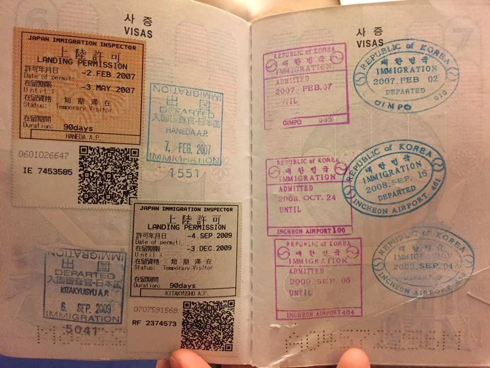 아래 두 번째 일본의 도장은 2009년 9월 4일~ 6일 인 것을 보니 아마도 기타큐슈에 갔을 때인 듯..! 그 사이에도 여행을 다녀왔었는데 오른쪽 한국 출/입국 도장도 그렇고 모아서 찍어주기를 다들 좋아했다. ㅎㅎ 일본 도장 아래에 이렇게 또 찍어줬다. 허허, 거기에 입사하게 될 줄도 몰랐던 항공사의 특가로 다녀왔던 여행 ㅎㅎ
