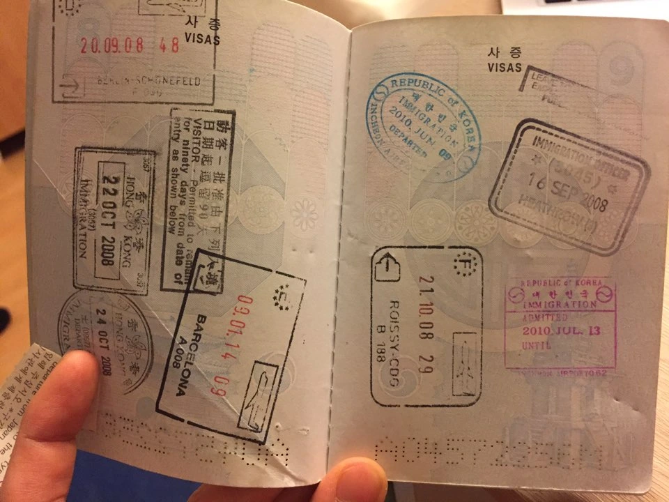 거의 10년이 지났는데도 아직도 내 삶의 자양분이 되어주고 있는 40여 일간의 유럽 배낭여행. 그 기록이 여권 2페이지에 고스란히 남아있다. 오른쪽 위 네모난 도장, 런던 히드로 공항으로 2008년 9월 16일 입국해서 런던에서 5일을 보내고 왼쪽 위에 잘 안 보이지만 2008년 9월 20일에 베를린으로 넘어갔다. 그 이후에는 기차를 타고 주욱 다니다가 2008년 10월 21일, 파리 샤를 드골 공항에서 출국할 때가 되어서야 오른쪽 아래에 출국 도장을 받았더랬다. 그리고 돌아오는 길에 홍콩에 스탑 오버하여 친구들과의 첫 홍콩을 보내고 나서야 길고도 짧은 여정이 끝이 났다. (그러고 보니 왼쪽 아래에 14년에 다녀온 바르셀로나 도장이 있다.. 이 사람들 또 굳이 여기에 모아서 찍어줬다 ㅋㅋ)