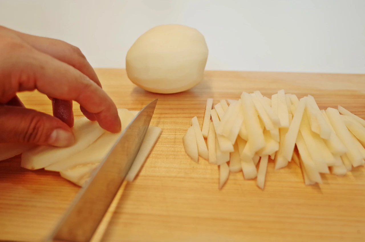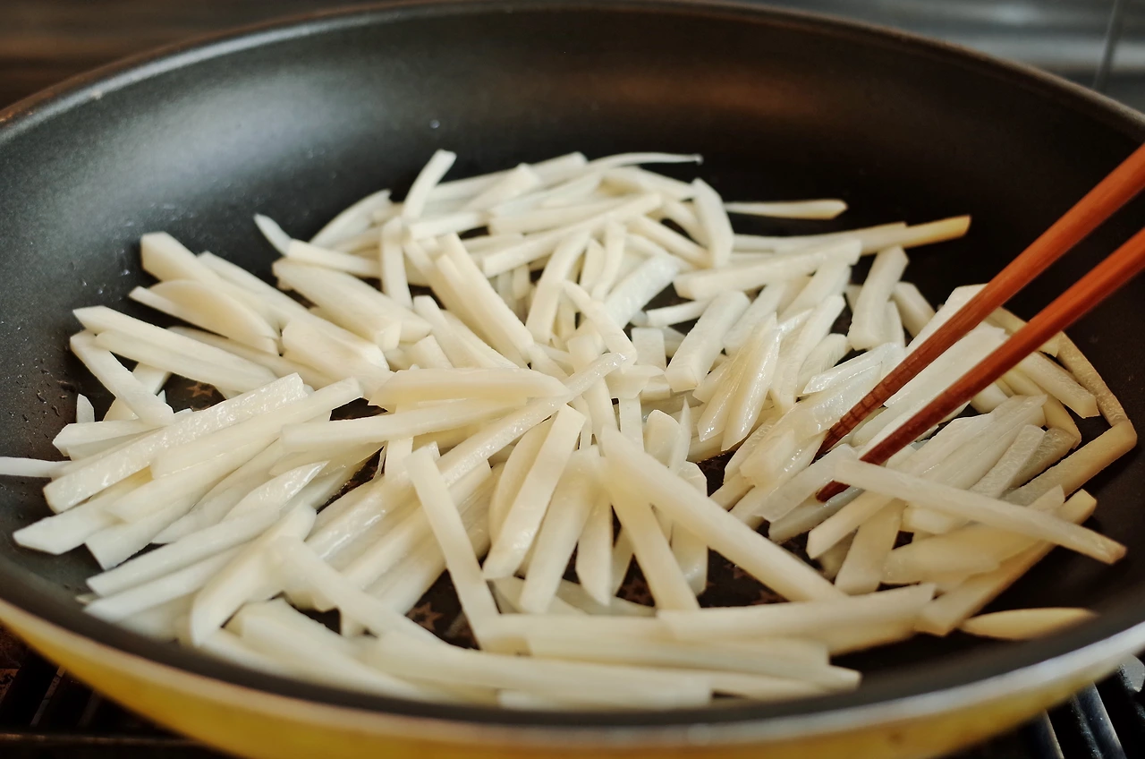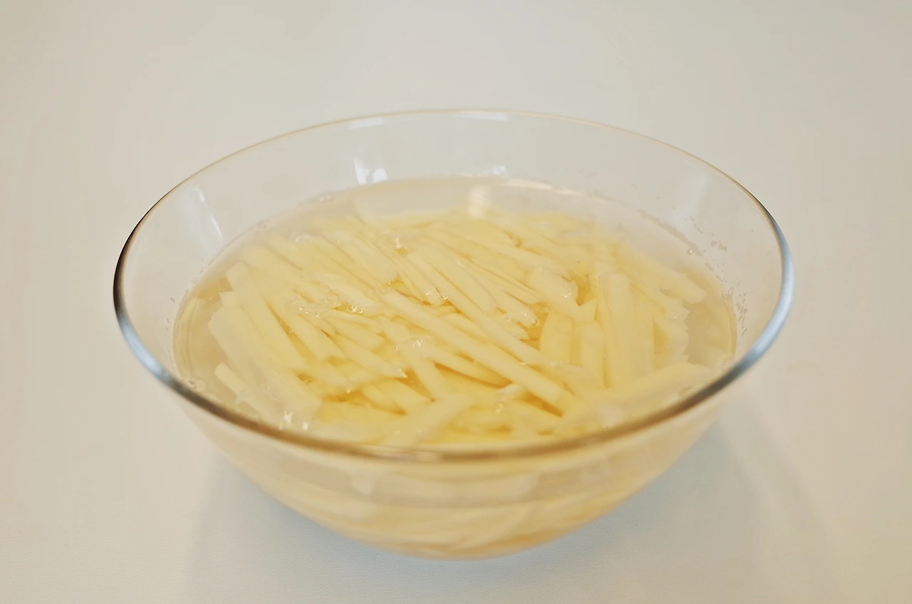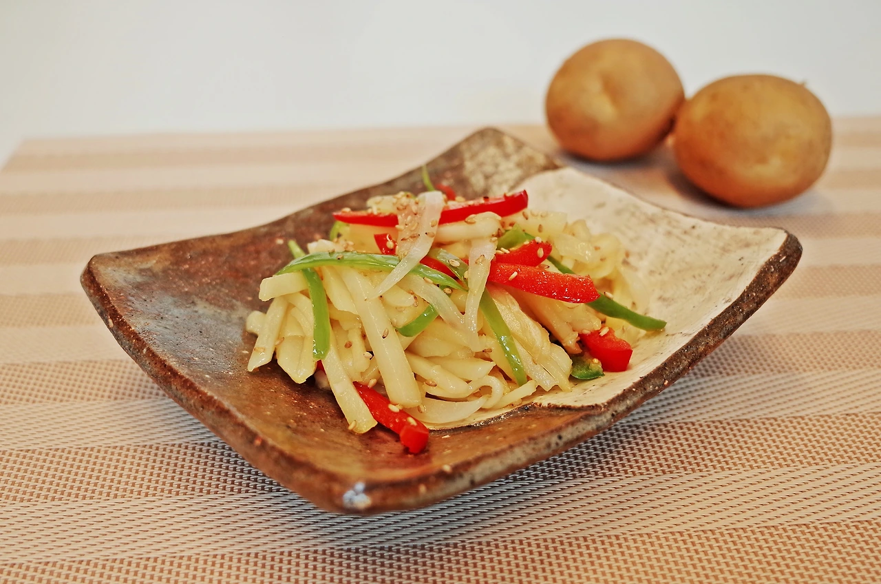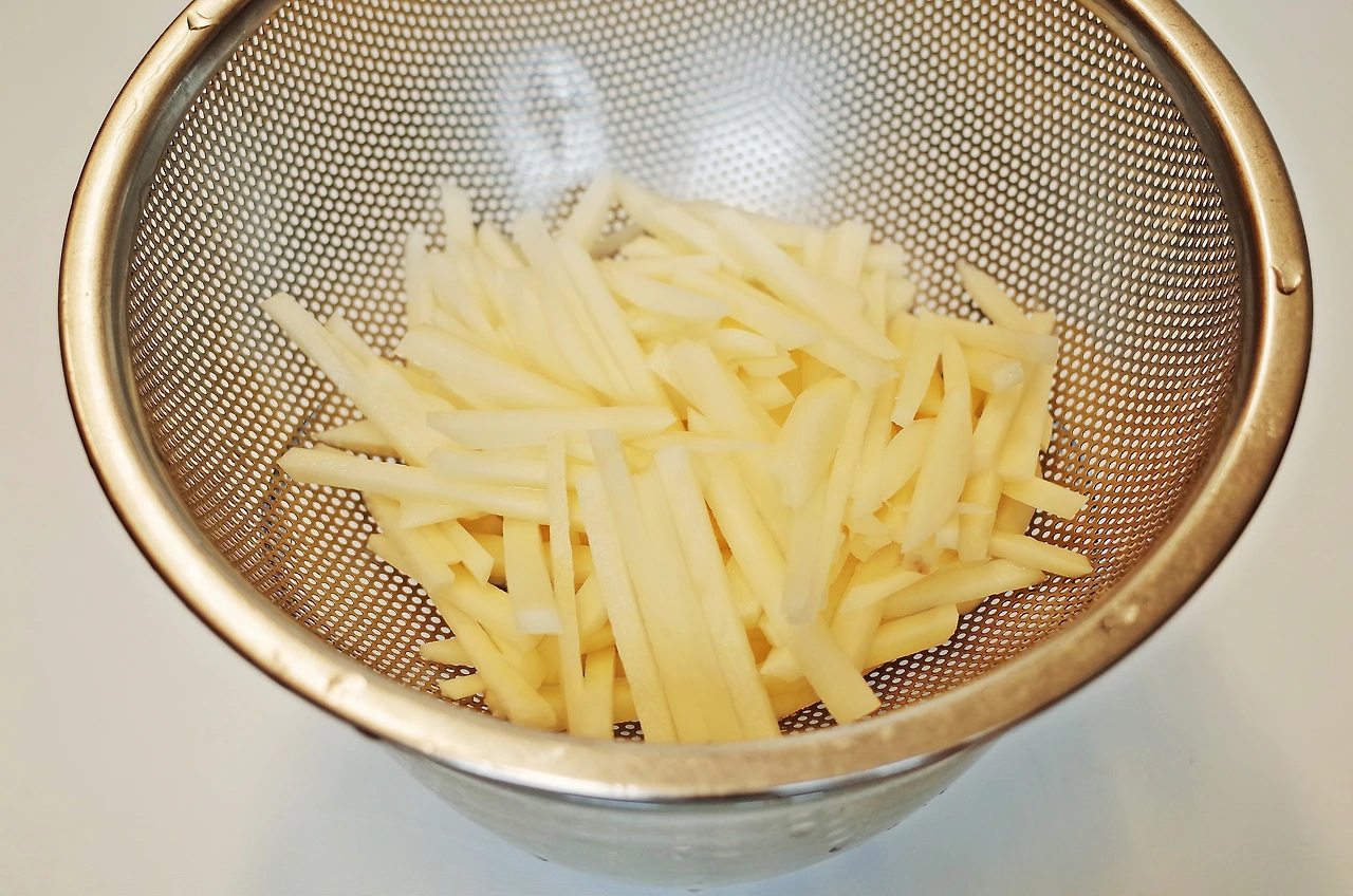 채 썬 감자는 물에 담구어 소금을 조금 넣어주면 탄력이 생겨 감자가 부서지지 않는답니다.