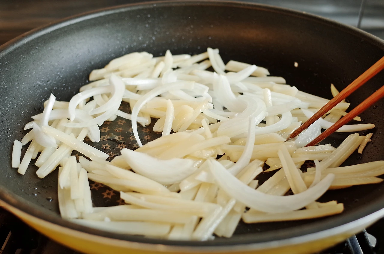 감자가 투명해지면 양파와 소금을 넣고 휘리릭 볶아주세요.