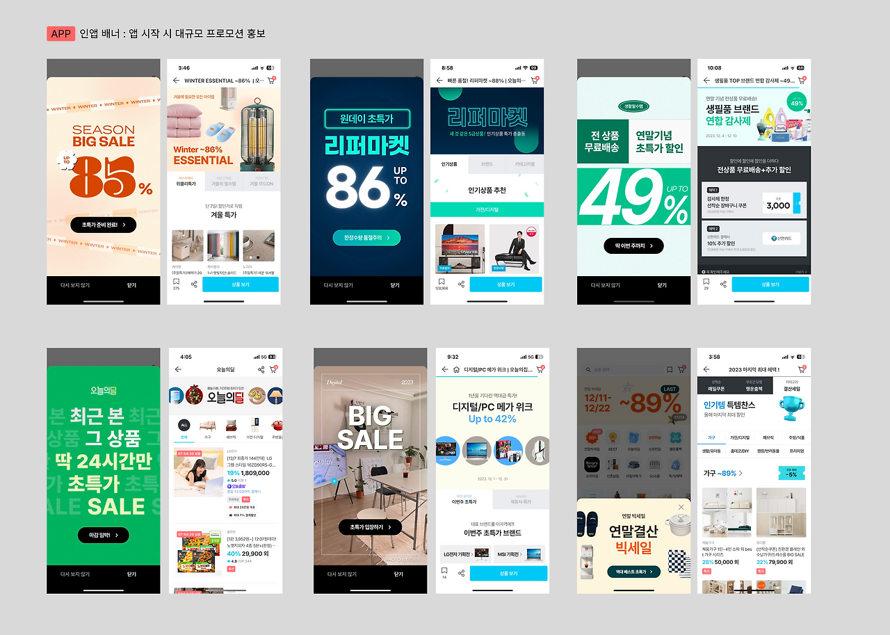 앱을 이용하면서 가장 많이 접했던 인앱배너는 역시 매스 고객을 대상으로 한 프로모션 홍보였다. 카테고리별 MD가 프로모션을 진행하고 있어서 인지, 배너 내 프로모션 내용은 접속할 때마다 매번 달랐다. 내부에서는 카테고리별 프로모션 우선순위를 어떻게 측정해서 노출하고 있는지는 모르겠지만, 앱을 접속할 때마다 배너가 노출되어서 과하다는 느낌이 들었다. 적어도 1일 2회 노출 제한이 되었으면 좋겠는데, 앱 접속할 때마다 노출되니 어떤 프로모션이었는지 기억도 잘 나지 않아서 아쉬웠다.