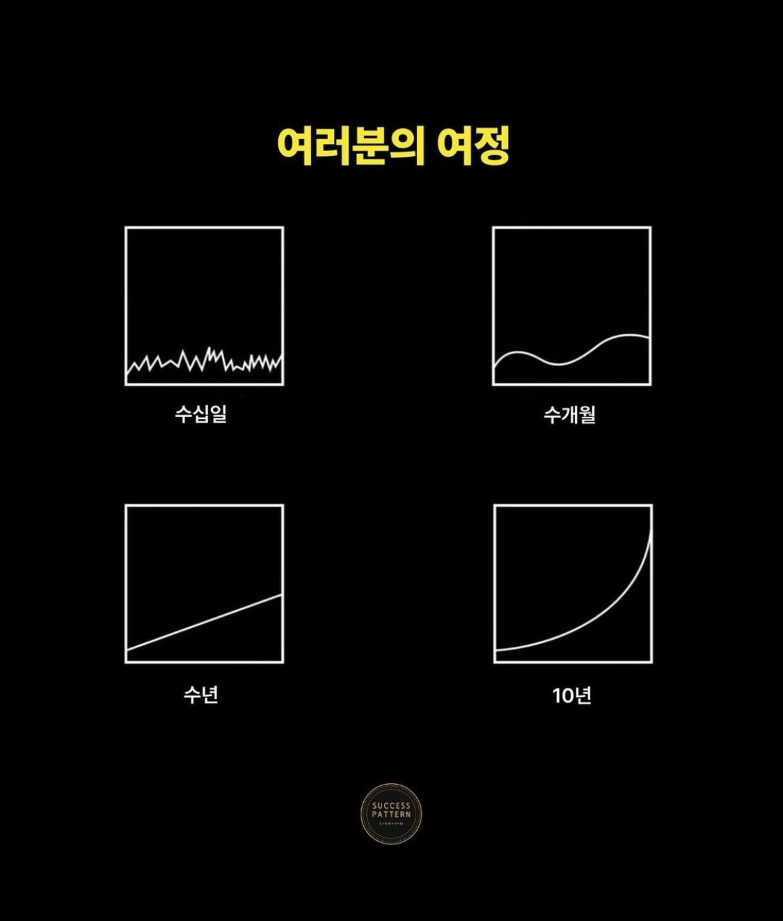 그러니 중요한 건 커리어를 이어나가려는 노력이다. 지금 내가 최고의 위치에 있다든가 잘되고 있다는 것에 지나치게 취하거나 잘 되지 않고 있다고 자책하며 괴로워하는 것도 아닌, 그저 지금 하는 일을 계속 이어지게 만드는 게 중요하다. 작은 일에 일희일비하지 말자. 우리의 여정은 가까이서 보면 요동치는 그래프를 그리고 있지만, 압축해서 보면 곧은 곡선을 그릴 수 있으니 말이다.