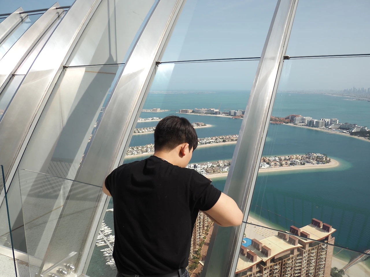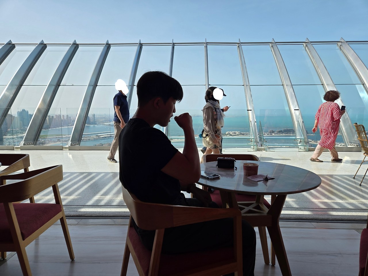 아부다비에서 이어지는 두바이 외곽은 황량한 허허벌판에 덩그라니 건물들 몇 개가 전부였지만, 팜주메이라로 갈수록 고층빌딩들이 서서히 드러나기 시작했다. 지하철, 트램 등을 몇 번 갈아탄 끝에 팜주메이라 전망대에 도착했다. 석양에 와야 한다는 블로그 글을 봤지만, 낮에도 너무 좋았다. 지구급 부자들의 별장이 있는 동네를 내려다 보면서 아들과 나는 연신 감탄을 연발했다. '탁월한 지도자'의 선구적인 식견과 결단이 어떻게 문명을 바꿀 수 있는 지 체감했다. 싱가포르의 리콴유 총리도 대단했지만, 두바이의 지도자들도 정말 대단한 사람들이다.