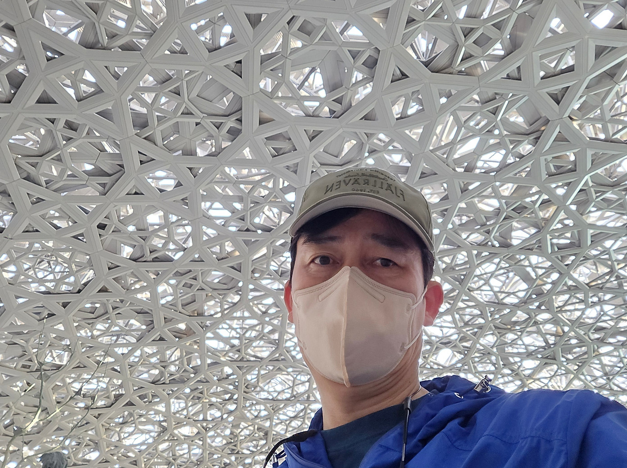 아부다비는 두바이에 비하자면 영락없는 지방 소도시 느낌이었다. 물론 야스섬이라는 동네는 F1 경기장이나 페라리 파크 등이 있지만, 도심에서 너무 멀리 떨어져 있어서 우리는 이번에도 다운타운을 선택했다. 나는 줄곧 루브르박물관과 사원을 가보고 싶었던 터라. 호텔에서 얼리 체크인을 하자마자 아들과 떨어져서 루브르박물관으로 향했다.