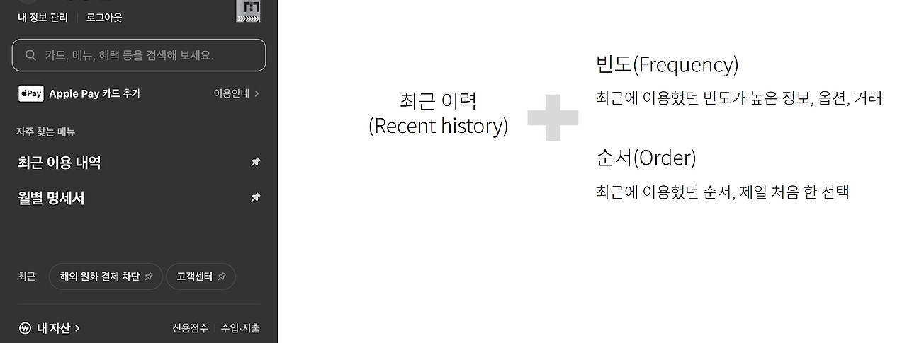 기본적인 활동 데이터를 활용한 서비스들도 사례를 많이 찾아볼 수 있습니다. 단순하게 활동 데이터를 있는 그대로 보여주는 것도 좋은 개인화이지만, 빈도/순서/맥락 등을 감안해서 개인화를 제시하면 제한된 공간/시간 내에서 좀 더 의미있는 UX를 제공할 수 있습니다.