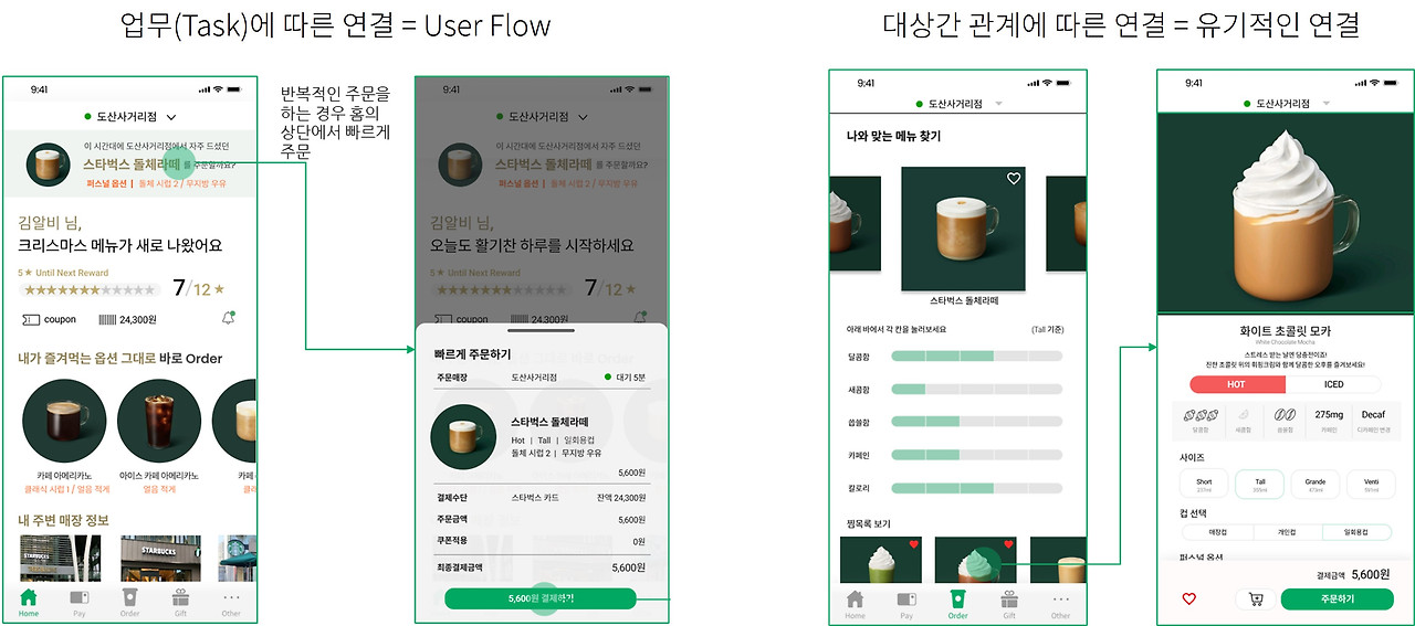 디지털 서비스에서는 업무(Task)에 따른 연결도 있고, 경험요소간 관계에 따른 유기적인 연결도 있다. 업무에 따른 연결이 서비스가 정한 규칙에 의한다면, 유기적인 정보간 연결은 사용자 의도에 의해 진행된다