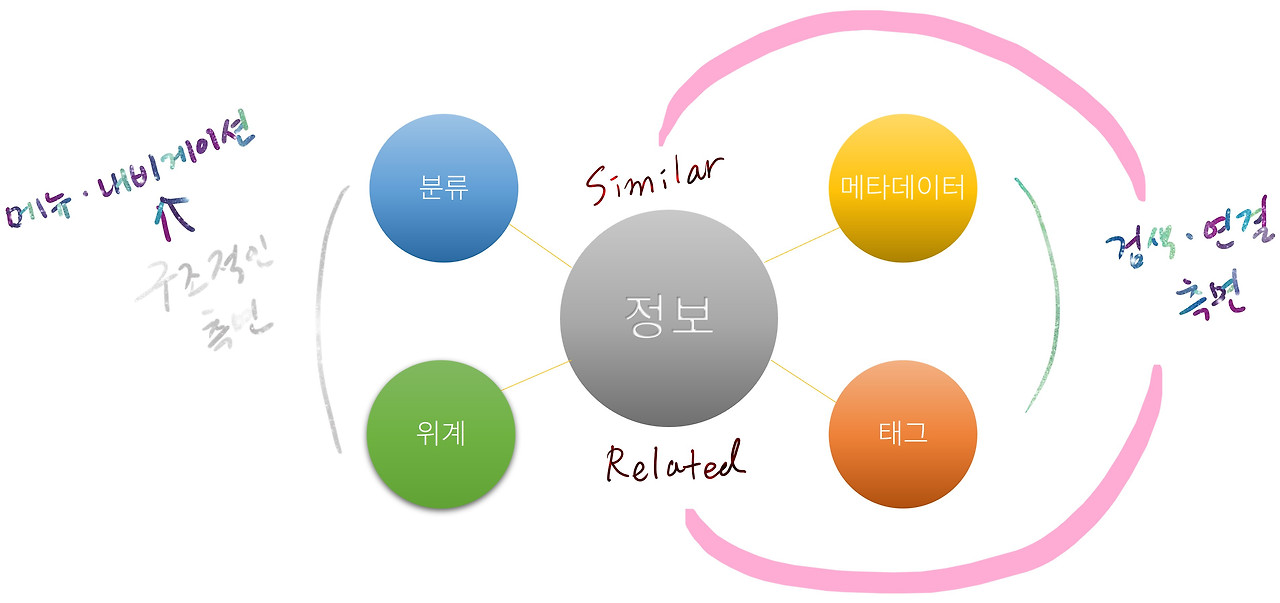 지금은 분류/위계에 의한 연결보다는 '유기적인 연결'의 시대이다. '정보간 유사성, 연관성, 동일 특징 공유' 등에 따라 정보가 연결되면 사용자는 의도한대로 서비스를 자유롭게 돌아다닐 수 있다