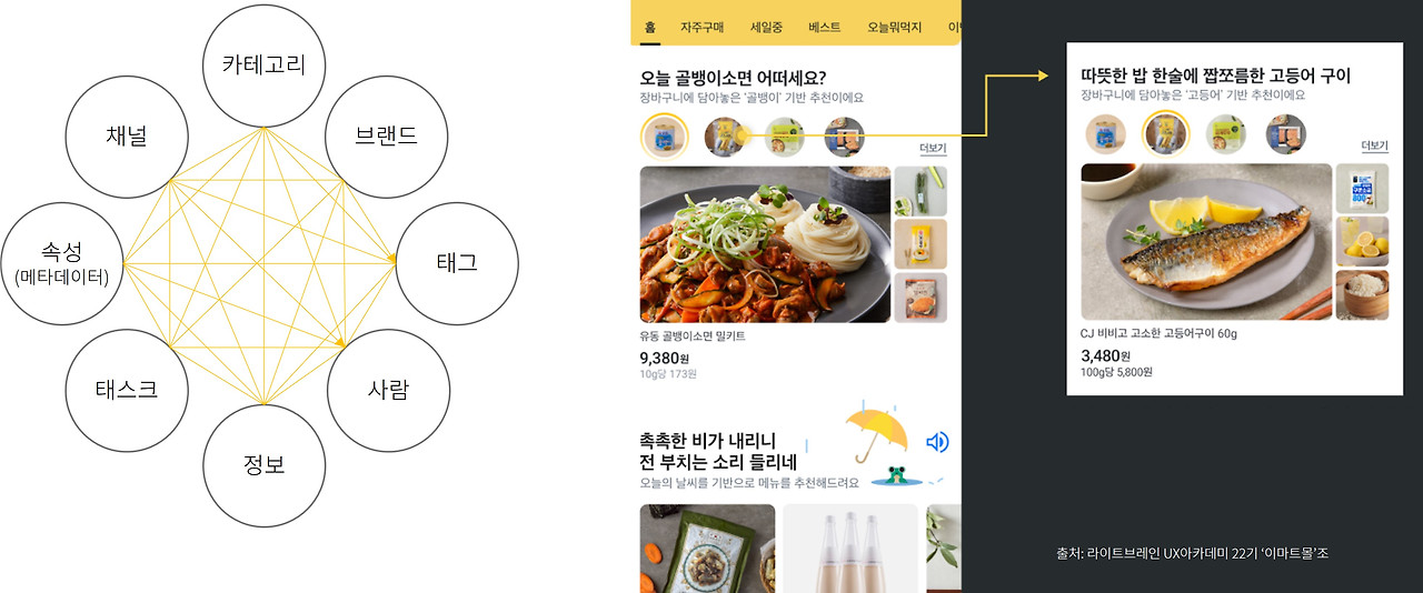 디지털서비스에서의 연결은 꼭 정보 단위에서만 일어나지 않는다. 서비스 내/외부의 다양한 경험요소들이 맥락에 부합되기만 한다면 위계나 속성을 벗어나서 여러가지 형태로 연결될 수 있다