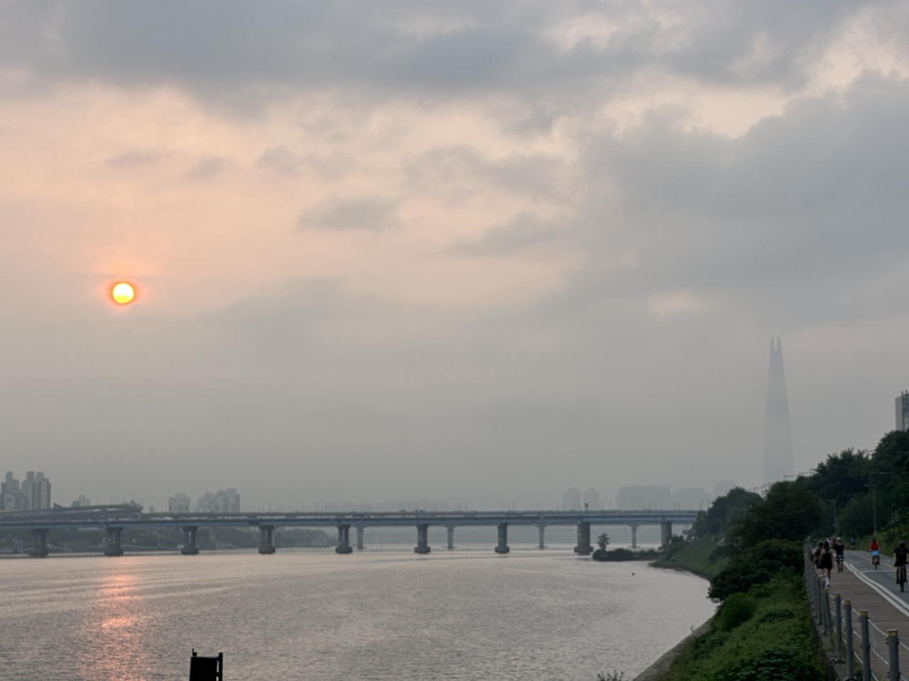 폰을 가지고 가는 날은 간혹 사진도 찍는다. 스마트폰으로는 거의 사진을 안찍는 편인데도 운동 중에 사진을 찍는다는 것은 그만큼 풍경이 가치있다는 뜻이다. 오늘은 폰을 안가져가고 워치에 손수건, 무선이어폰만 챙겼는데 비가 갠 다음날의 하늘이 너무 멋있어서 살짝 아쉬운 마음이 들었다.