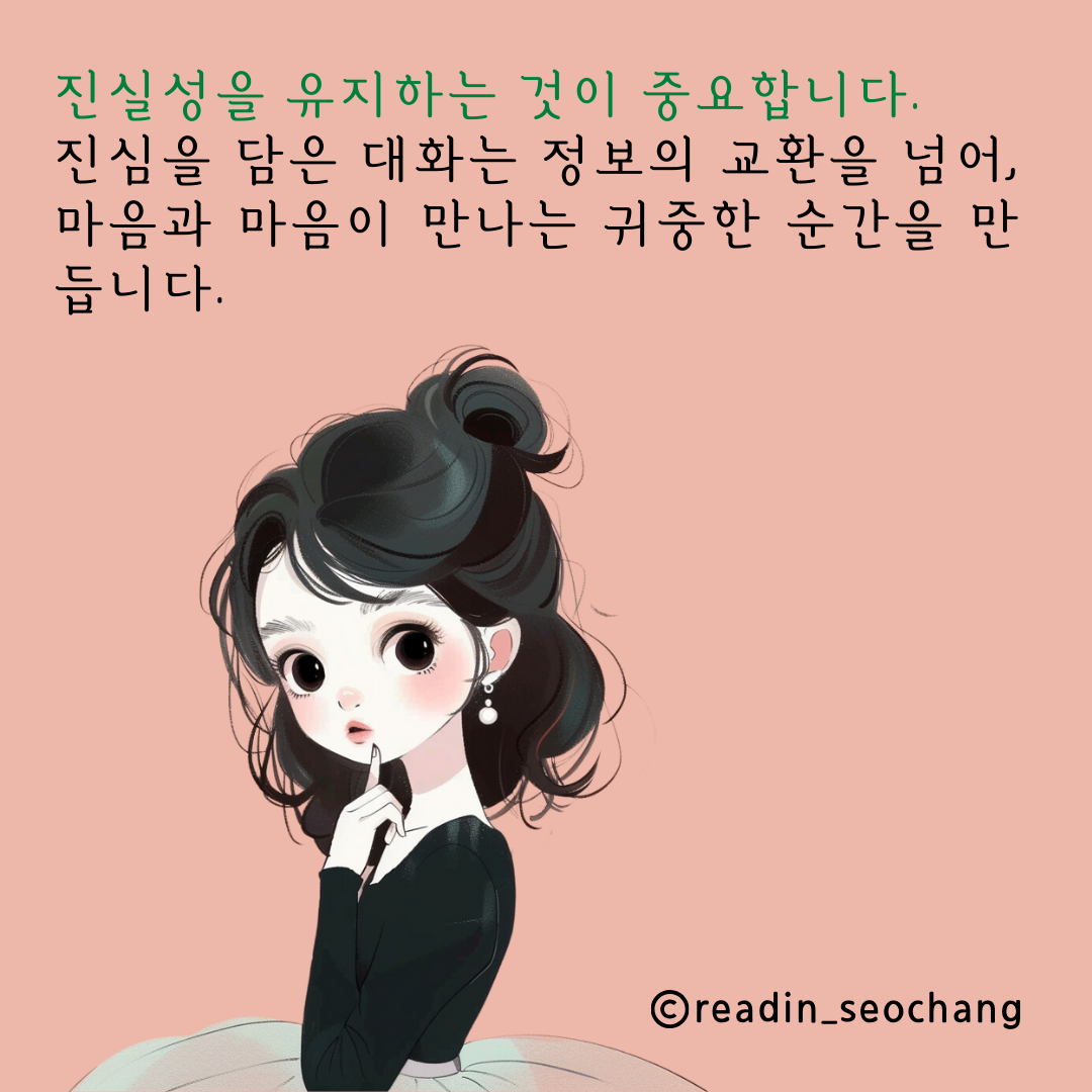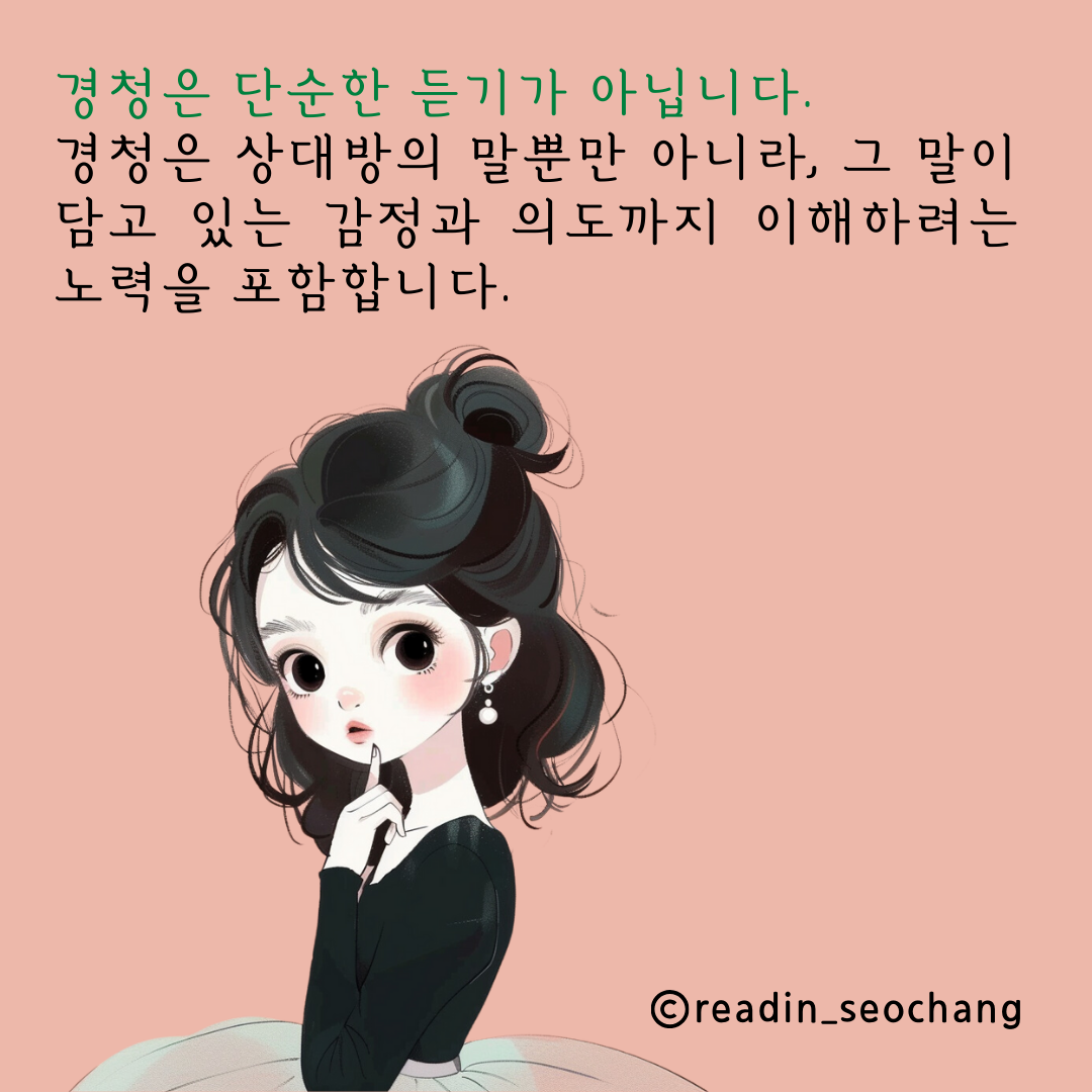 경청: 경청은 단순히 상대방의 말을 듣는 것이 아니라, 그 말이 담고 있는 감정과 의도까지 이해하려는 노력을 포함합니다. 상대의 말에 진정으로 귀 기울일 때, 우리는 서로의 가치를 인정하며 의미 있는 대화를 나눌 수 있습니다.