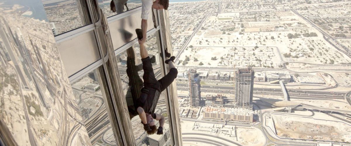 영화를 본 분이라면 톰 크루즈가 빌딩을 기어오르는 장면에서 온 가슴을 졸였던 기억들이 다들 있을 텐데, 많은 분들이 아시다시피 이 장면은 대역이나 CG처리 없이 촬영해서 그 가치가 더 대단하다고 할 수 있다. 122층과 148층 사이에서 촬영했고, 만약 촬영 중 추락을 하는 사고가 나더라도 122층에서 멈출 수 있게 라운지의 튀어나온 테라스에 떨어질 수 있는 쪽에서 촬영했다고 한다. 영화뿐 아니라 실제 촬영장에서 조차 손에 땀을 쥐었을 것만 같다.