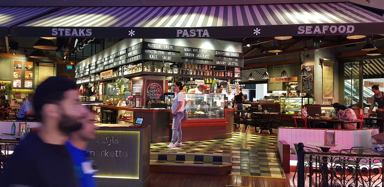 두바이몰 마케팅 레스토랑 Markette Restaurant 은 마음이 따뜻해지는 컨셉으로, 주방의 마음과 정신을 담아 집에서 요리한 것처럼 훌륭한 커피 및 편안한 음식을 제공한다.