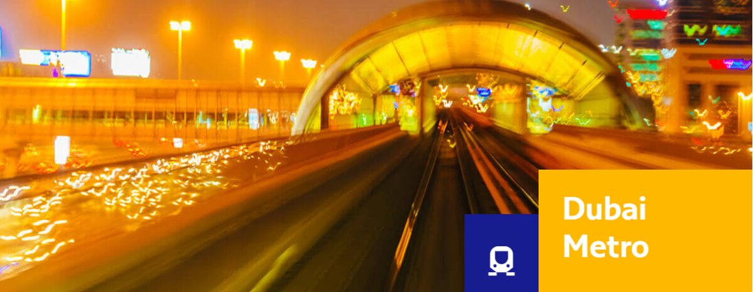 두바이 메트로(Dubai Metro)는 전부 무인 자동시스템으로 운행되고 있다. 노선 중 붉은 선 레드라인(Red Line)은 셰이크 자예드 로드(Sheikh Zayed Road)를 통해 도시 중심부를 지나는 노선이다. 그리고 그린라인(Green Line) 은 두바이 크릭 수로 주변을 통과한다.