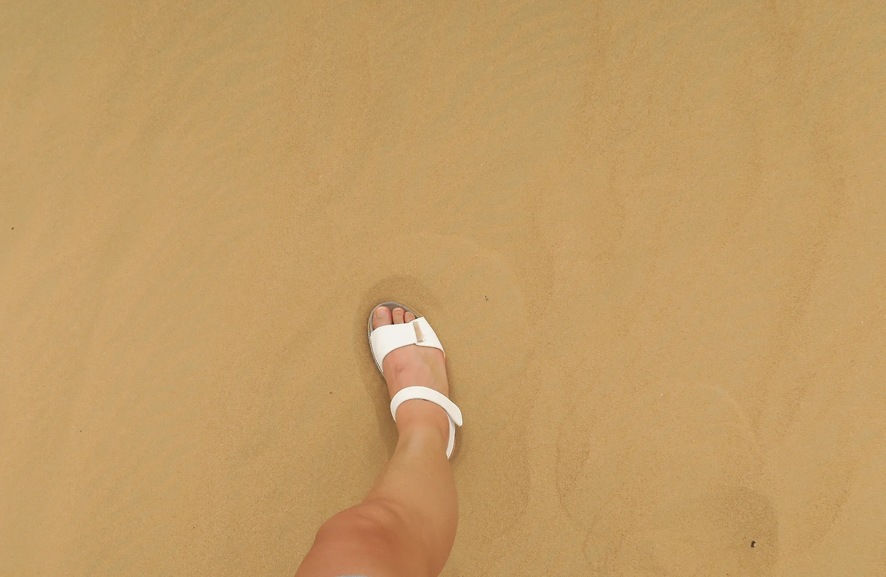 땅을 디딘 발은 부드러운 모래가 사푼하게 끌어안고, 바람이 불어와 그 위를 다시 얕은 모래가 덮으려 한다.