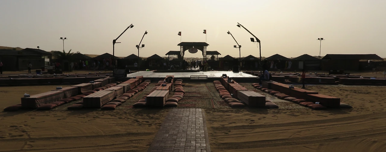 레스토랑에 입장하면 맛있는 아랍식과 그 외 인터내셔널 뷔페로 다양하고 맛있는 식사를 즐기는 것 뿐 아니라 말, 매, 낙타 체험 등과 헤나 문신체험 등도 할 수 있고, 아랍 고유의 춤인 타누라 쇼, 에미레이티 헤어 댄스, 불 쇼, 밸리 댄스 등등의 다채로운 공연을 구경할 수도 있다. 고급스러운 아라비아 풍의 사막 리조트에서 여유롭고 기분 좋은 시간을 보낼 수 있다.