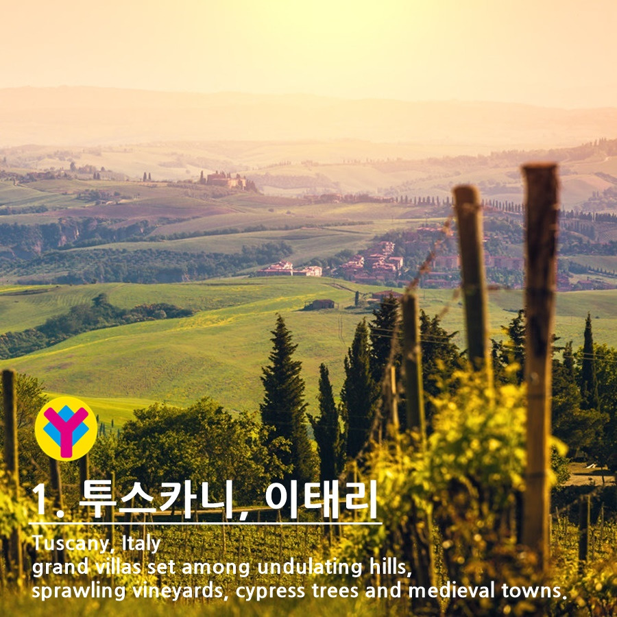 Why go: 신혼여행지 1위를 차지한곳은 이태리의 투스카나지역. 호화 별장에서 아로마 요리에 이르기까지 이탈리아 시골 지방에는 로맨스가 가득하다. 시에나 (Siena)와 루카 (Lucca)를 방문하여 피렌체 (Florence)의 복잡한 인파를 피할 수 있고, 해안을 따라있는 친퀘테레 (Cinque Terre) 마을도 방문가능.