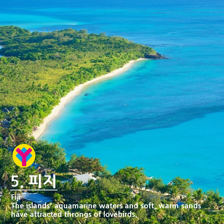 Why go: 피지 (Fiji)의 고요한 해변은 식사 후 휴식을위한 완벽한 프라이빗을 제공한다. Luxe 리조트 및 야사와군도 에서 스노클링을 하며 신비한 수중세상을 볼 수 있으며 또는 마마누다(Mamanucas) 근처 서핑과 같은 액티비티를 할 수 있는 멋진 포인트가 있어 신혼여행지로 잊지 못할 경험을 할 수 있다.