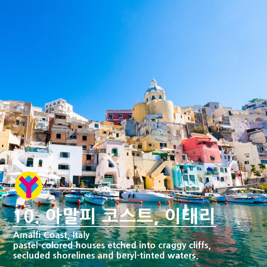 Why go: 이탈리아 남서쪽 연안의 다채로운 마을, 가파른 절벽 및 험준한 해안선은 신혼 여행을위한 유일한 곳. 신혼 여행객은 수백만 명의 관광객이 이 지역을 방문 할 때 (여름 방학) 를 피하고 오는게 좋다.
