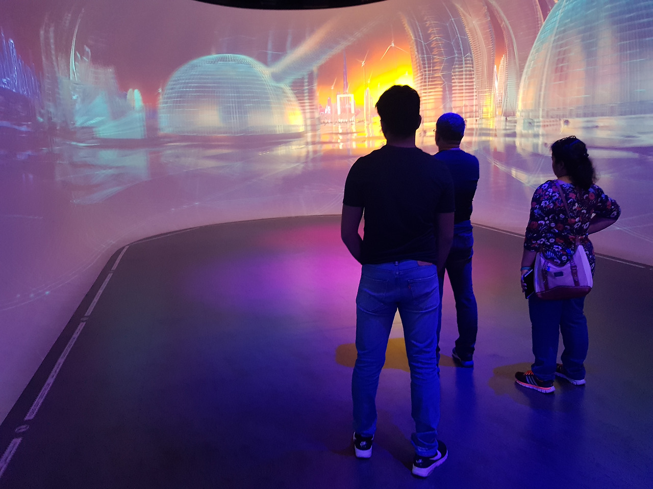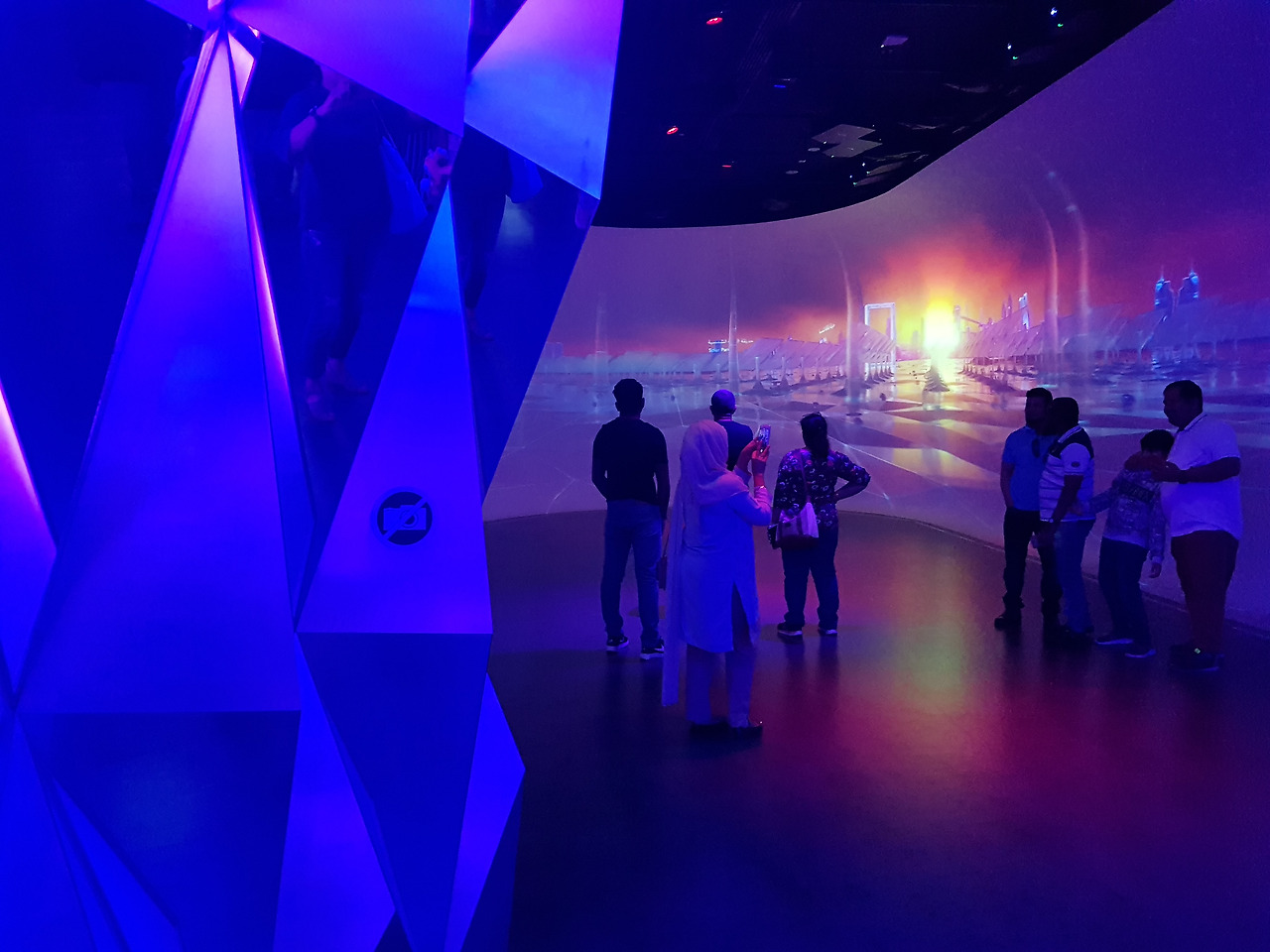 그의 얼굴 양 옆으로 뚫린 어두운 통로를 따라 들어가면 두바이의 역사와 옛 도시의 모습을 보여주는 시청각 자료들과 일종의 세트장과 만나게 된다. 이 공간을 모두 지나면 엘리베이터를 타야 하는데 드디어 전망대가 있는 꼭대기로 올라가는 것!