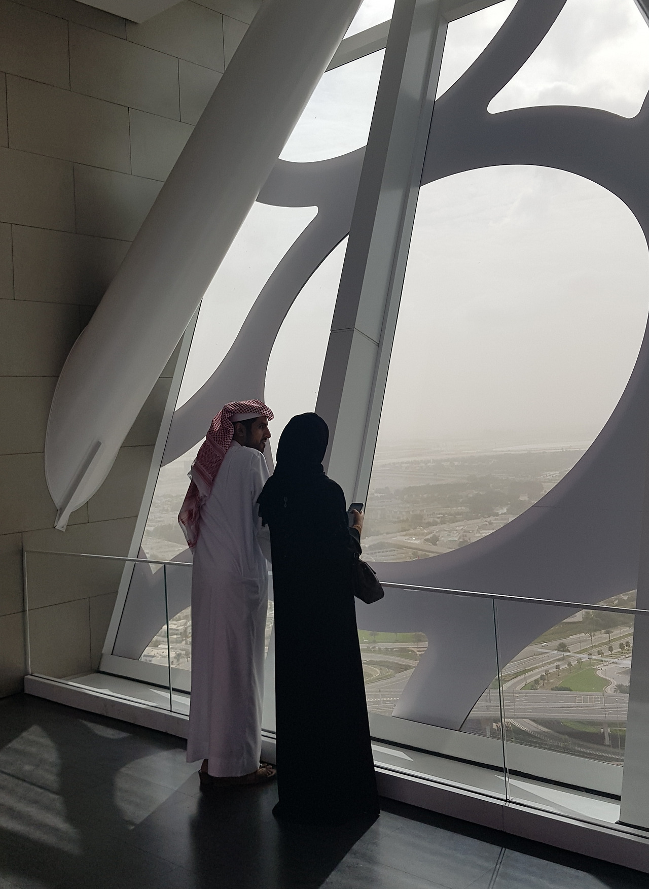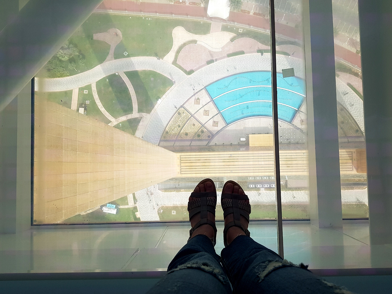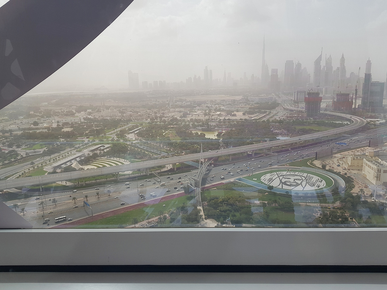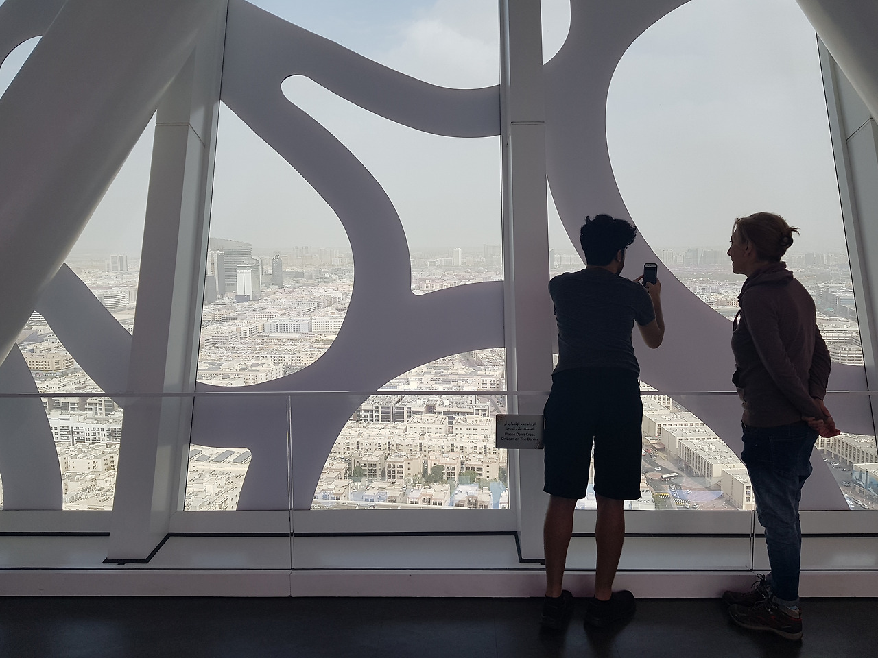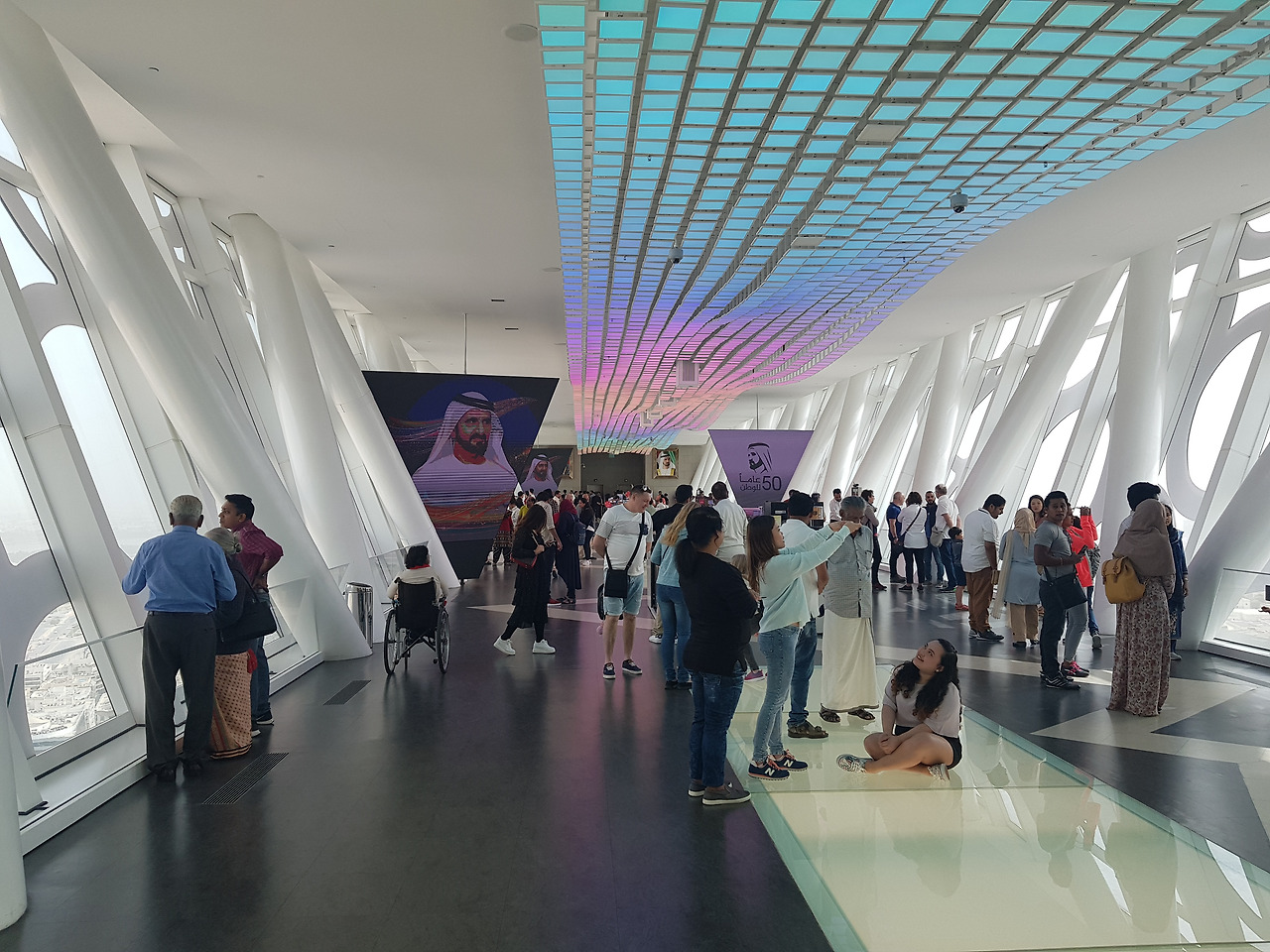 상부의 전망대는 무척 밝고 현대적이다. 가로로 긴 전망대는 파노라마 뷰를 보여주는데 가까이 있는 데이라(Deira) 구시가지 뿐 아니라 아라비아 만의 바다까지... 150m 높이에서 감상할 수 있다.