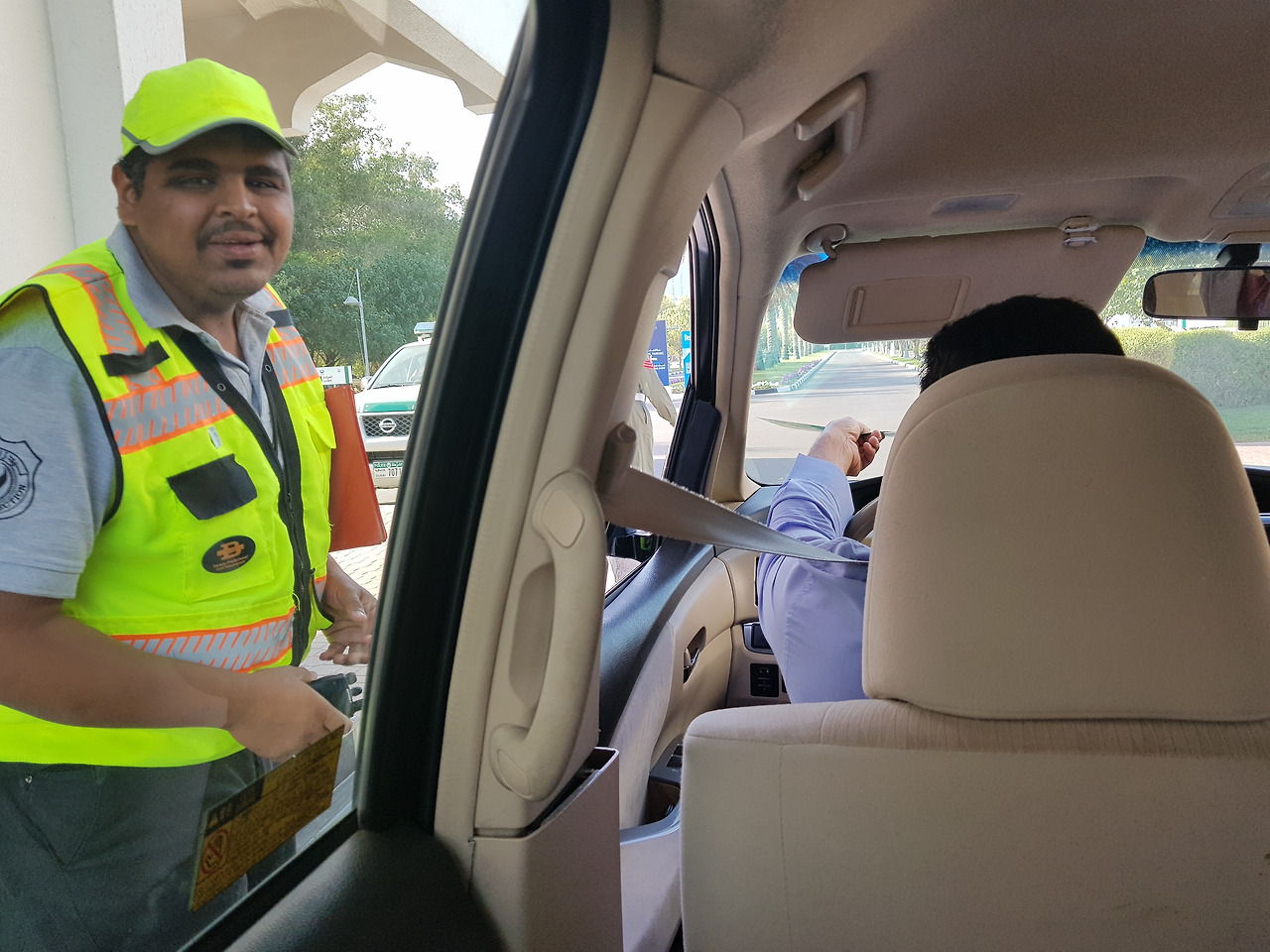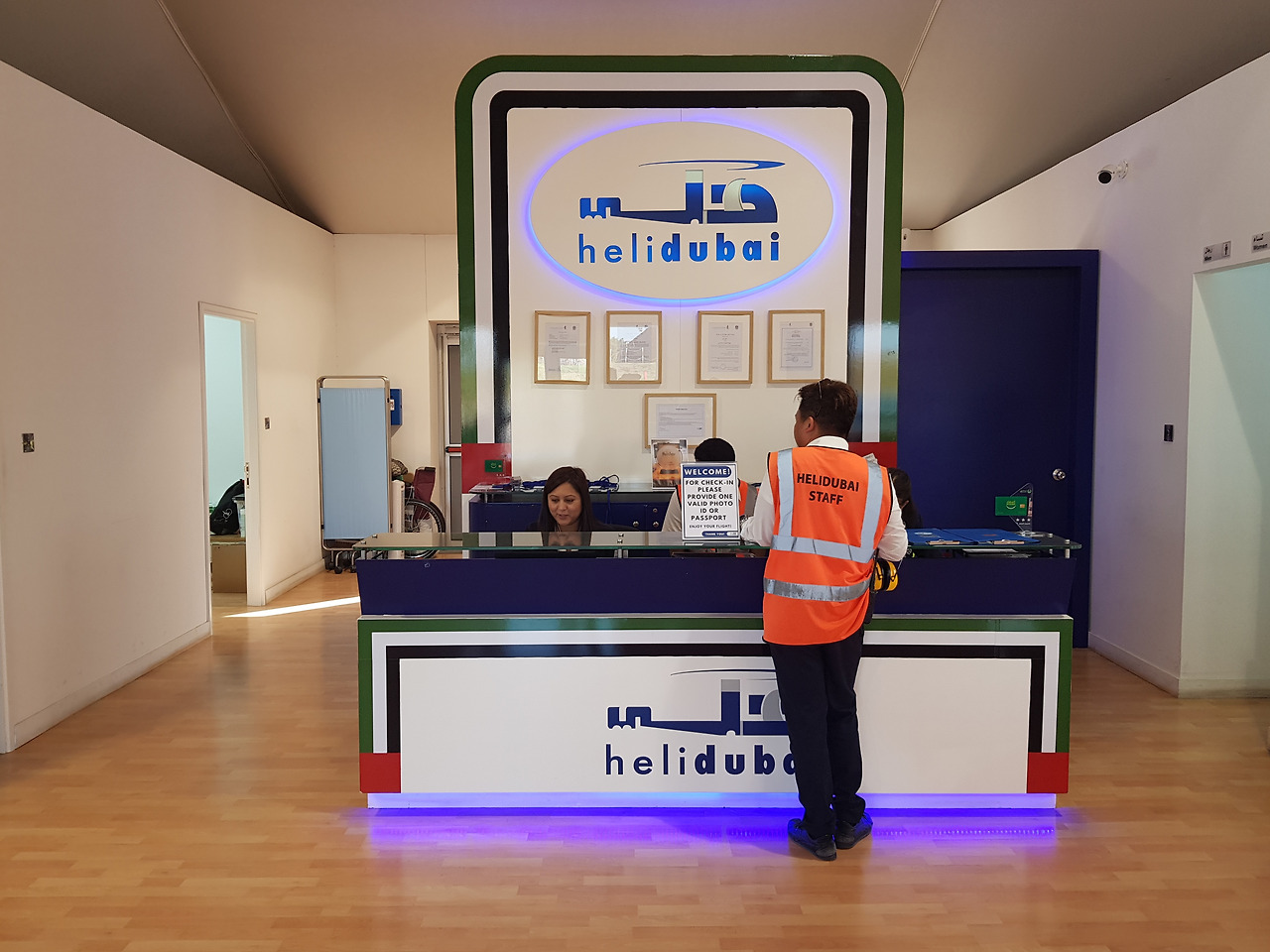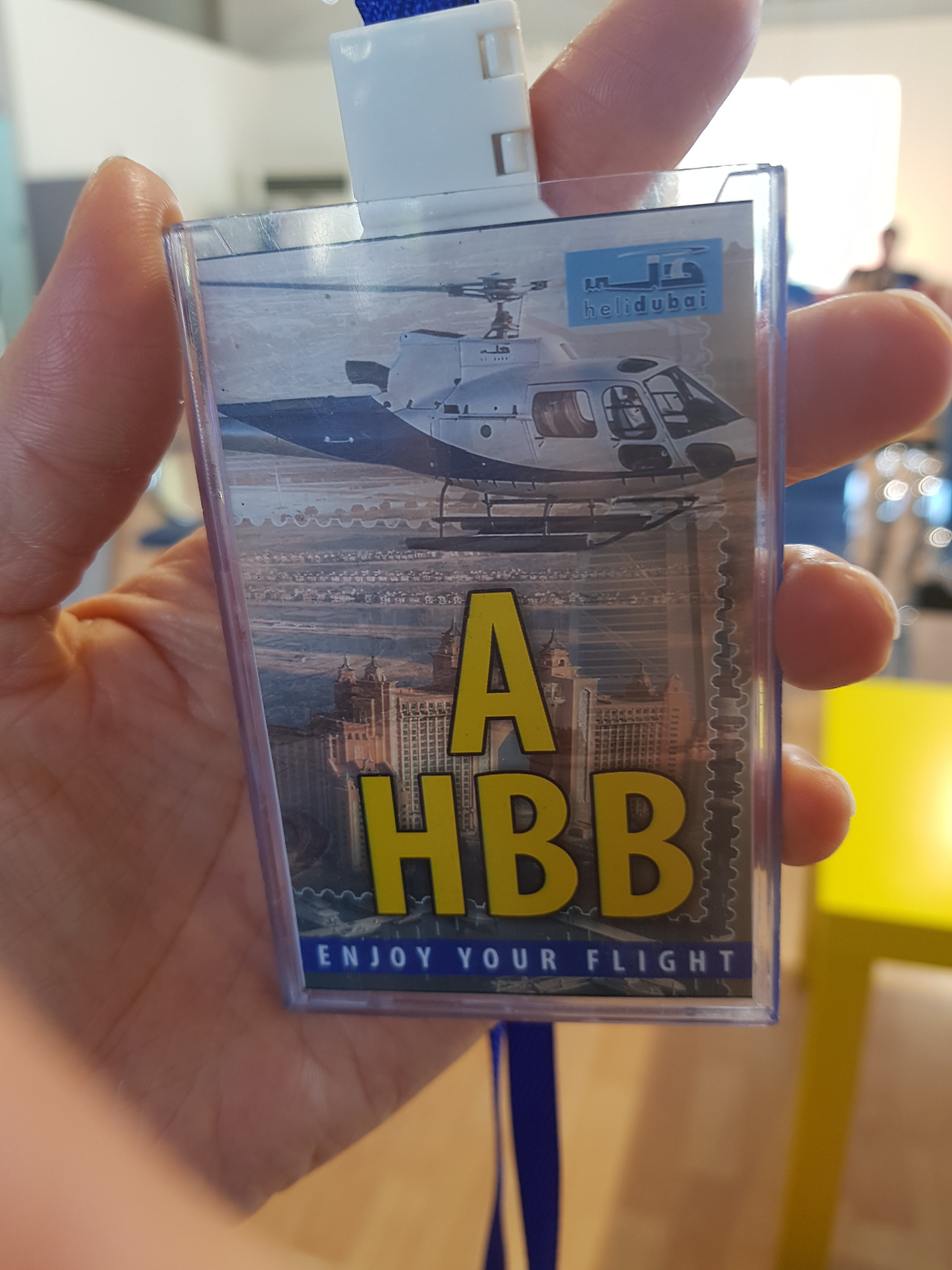 그리고 나서 또 다시 대기를 하는데, 이 때에는 목에 패찰 같은 걸 걸어준다. 순서가 가까워진 고객들에게 나눠주는 일종의 순번표 같은 것인데, 이걸 걸고 있는 다른 사람들의 것을 보면 대략 저 사람이 나랑 같은 헬기를 탈 사람인지 아닌지 가늠이 된다. 내 패찰에 쓰인 알파벳은 A, 그리고 이것과 같은 패찰을 걸고 있는 사람이 보인다면 그 사람은 나와 두바이 하늘을 함께 날게 될 날개 동기가 될 확률이 99.99%