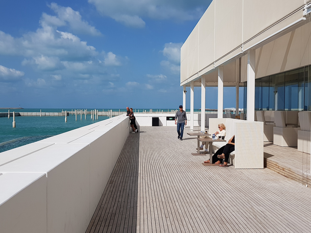 박물관 카페에서는 페르시아 만으로 통하는 바다와 바로 맞닿은 아부다비의 근사한 경치를 감상하며 내내 서서 작품들을 감상하느라 뻐근해진 다리를 쉬어 주기에 적당하다.