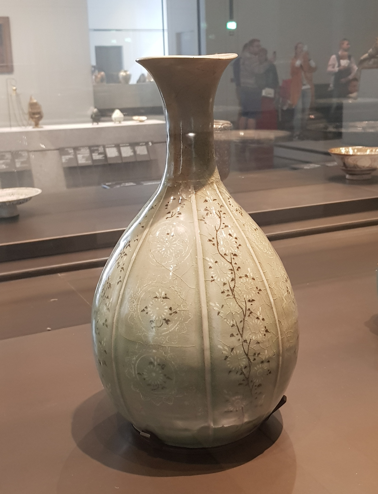 루브르 아부다비에서 유일하게 만난 한국 유물이다. 작품의 용도는 꽃을 꽂는 화병(Bottle with floral decoration)으로 소개 되어 있고 역사적, 지리적 출처를 Koryo dynasty(고려 왕조), Korea, A.D 1100-1300 으로 정확히 쓰여 있다.