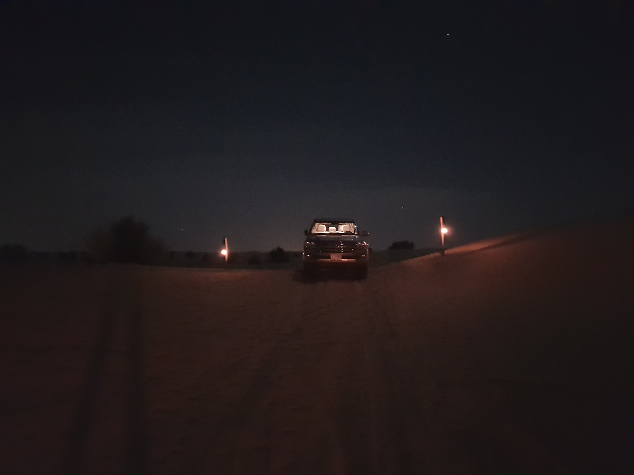 날은 이미 어두워지고 있었고, 2시간 정도를 더 달려서 사막 입구에 도착했을 때는 완전히 캄캄해져 있었다.
