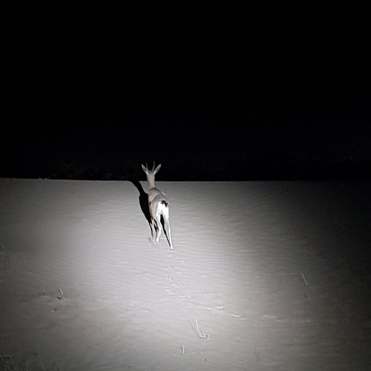 차는 다시 조용히 달렸고 한 지점에 이르러 가이드와 드라이버 그리고 나는 모두 차에서 내렸다. 사막 안으로 걸어가는 길, 랜턴을 들지 않았음에도 사물이 분간되는 것이 참 신기했다. 도시의 불빛도 없고 사방이 캄캄한데 단지 달빛과 별빛에 의지해 사막을 걷는 느낌이란...