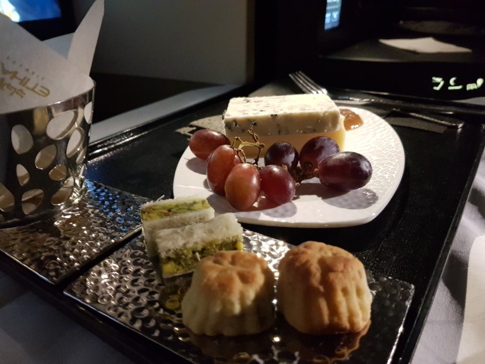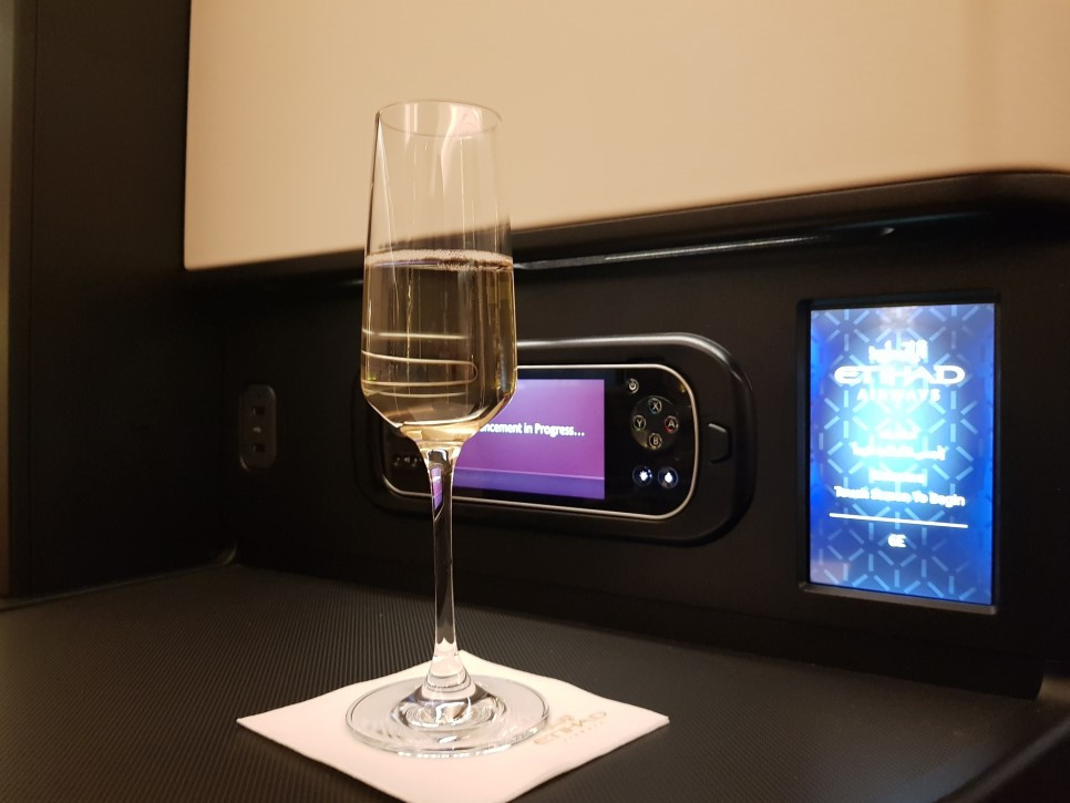 정식 기내식은 아부다비까지 2번 제공이 되고, 웰컴 드링크를 포함한 음료/주류/스낵 서비스는 당연히 제한이 없다. 웰컴 드링크는 역시 샴페인이 최고!