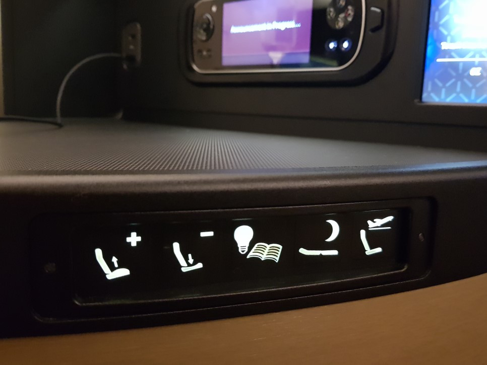 리모콘 옆의 작은 세로 화면을 터치해서 좌석 옆과 앞 등등에 있는 테이블 라이트, 무드등, 독서등...여러 곳의 조명을 각각 켜고 끌 수 있다. (물론 각 조명에도 자체 개별 스위치가 있다) 그 밖에도 위에 언급한, 시트에 내장된 좌석 기능을 조절할 수도 있다.