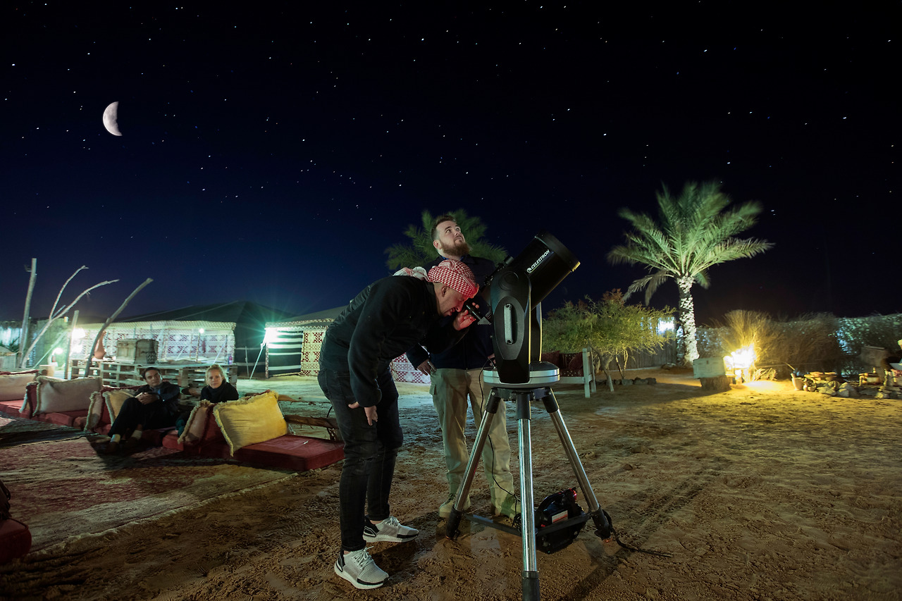 사막의 밤은 여기서 끝나지 않습니다. 전통적인 아랍 음식과 더불어 멋진 아랍음악(Oud Player)으로 밤을 더 아름답게 채우게 됩니다. 그리고 수많은 별을 바로 관측할 수 있는 사막의 밤하늘을 직접 망원경을 통해 바라볼 수 있는 시간을 즐기실 수 있습니다.