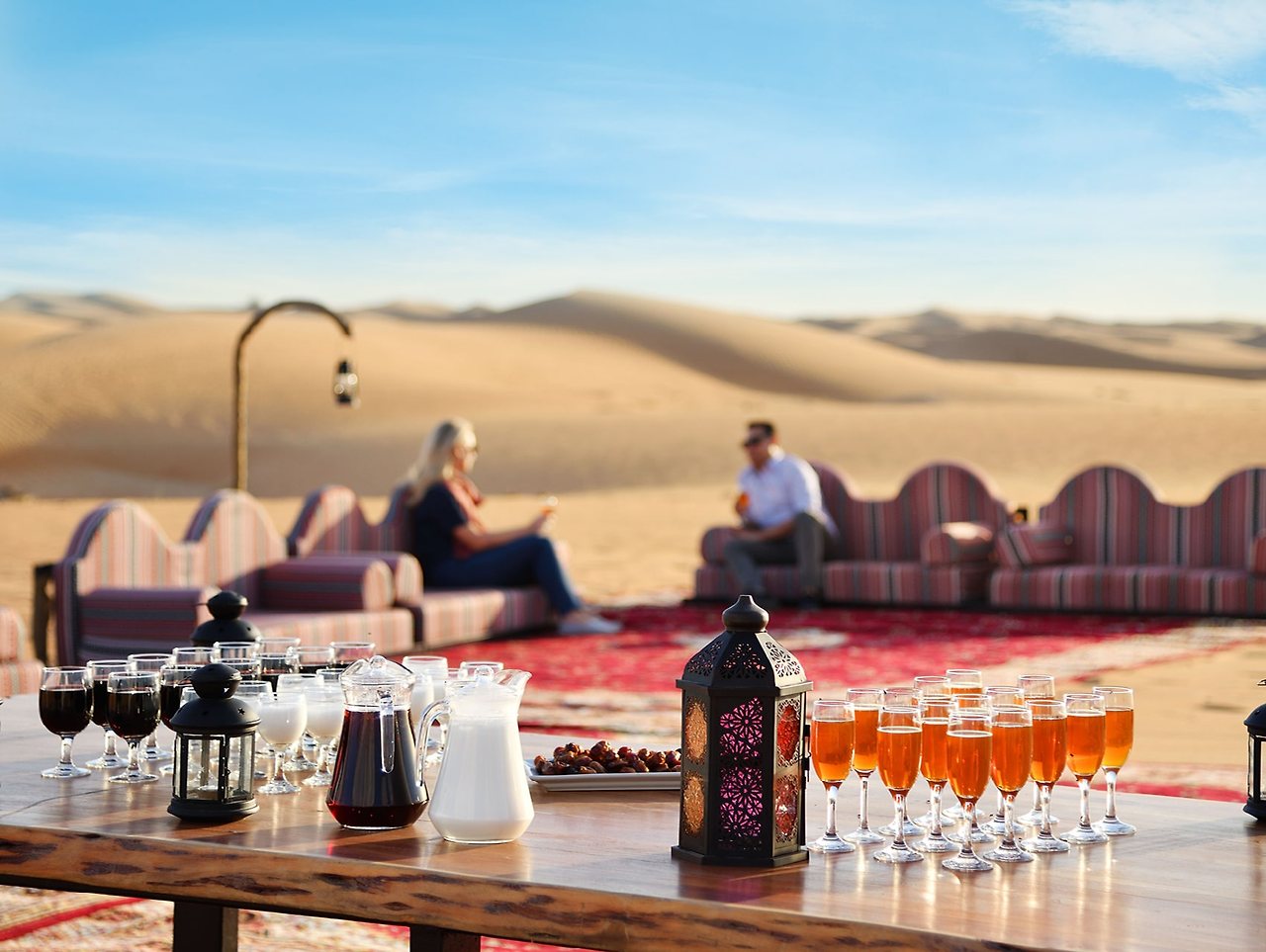두바이에서 열리는 이브닝 사파리에 참여하여 다른 어떤 것과도 비교할 수 없는 이프타르 체험을 즐겨보세요. 라마단 기간 동안 우리는 저녁에 사파리의 일몰이 일몰과 일치하도록 일정을 조정하여 깨끗한 사막 사구의 중심부에서 이프타르를 즐길 수 있습니다. 일몰 스폿에는 대추야자, labneh, 스파클링 대추야자 주스 및 Vimto 주스를 포함된 전통적인 이프타르(Iftar)가 준비되어 있습니다. 그리고 메인 캠프로 계속 이동하면 업데이트된 엔터테인먼트 옵션과 함께 일반적인 맛있는 아랍식 바베큐 메뉴가 제공됩니다.