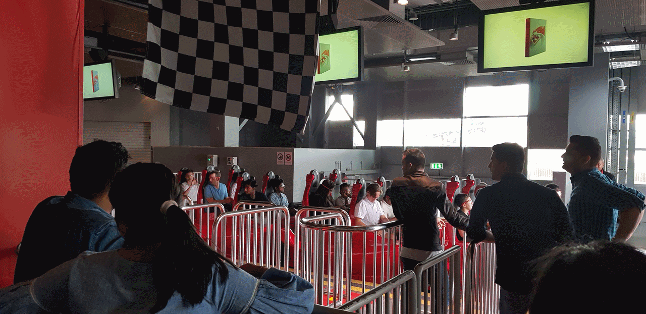 앞선 팀들이 출발한 지 1분 안팎으로 도착한듯하다. 출발 속도는 엄청 빠르고 동시에 더운 바람을 얼굴에 맞아가며 출발했다. 짧지만 강렬했던 롤러코스트의 여운은 크게 남았다. 무서울 틈 없이 달려가는 속도에 소리를 지를 겨를 도 없이 도착해버렸다. 하차 후 잠시 멍하게 무슨 일이 벌어졌나 싶었다. 스릴과 재미는 아부다비 여행에서 가장 기억에 남는 추억이 되었다.