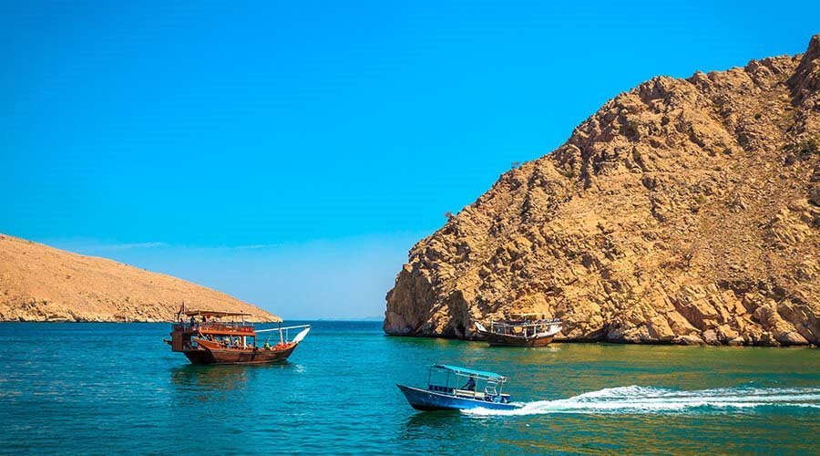 오만 무산담 투어는 크루즈를 타고 무산담 전체를 둘러보고