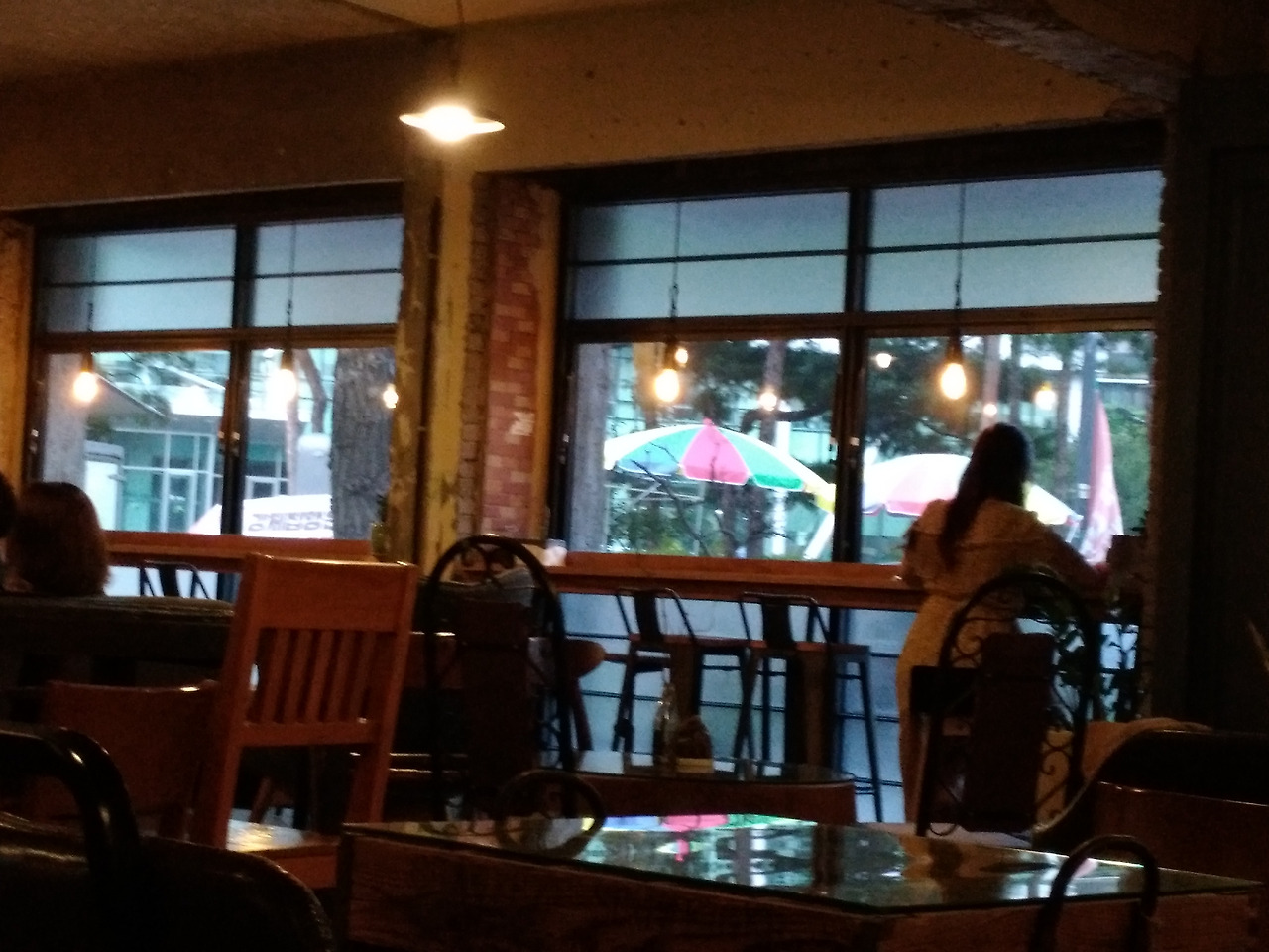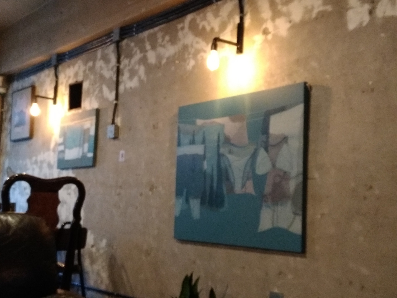 카페에 내걸린 그림을 감상하며 기웃거린다.