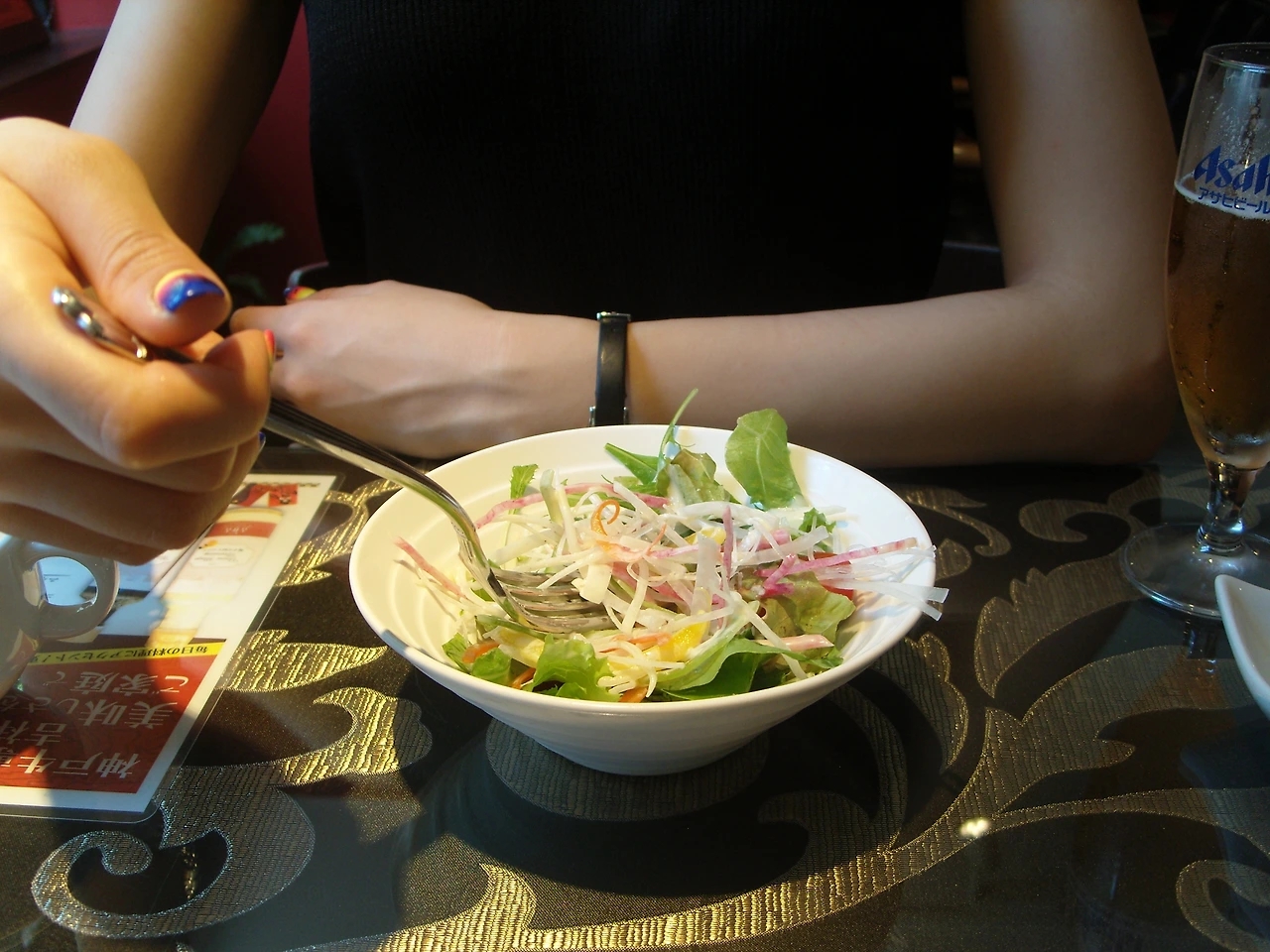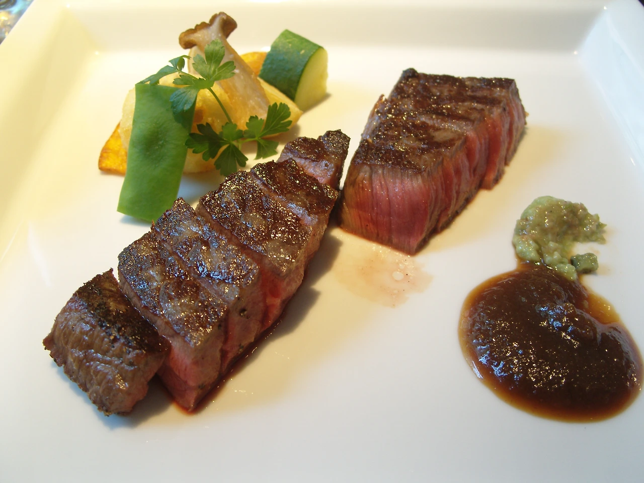 대신, 난킨마치가 끝나는 골목에 스테이크집이 눈에 띄었다. 가게 안에 손님은 우리뿐이었고 벽 일부에 다양한 수상내용의 액자가 자리를 차지하고 있었다.