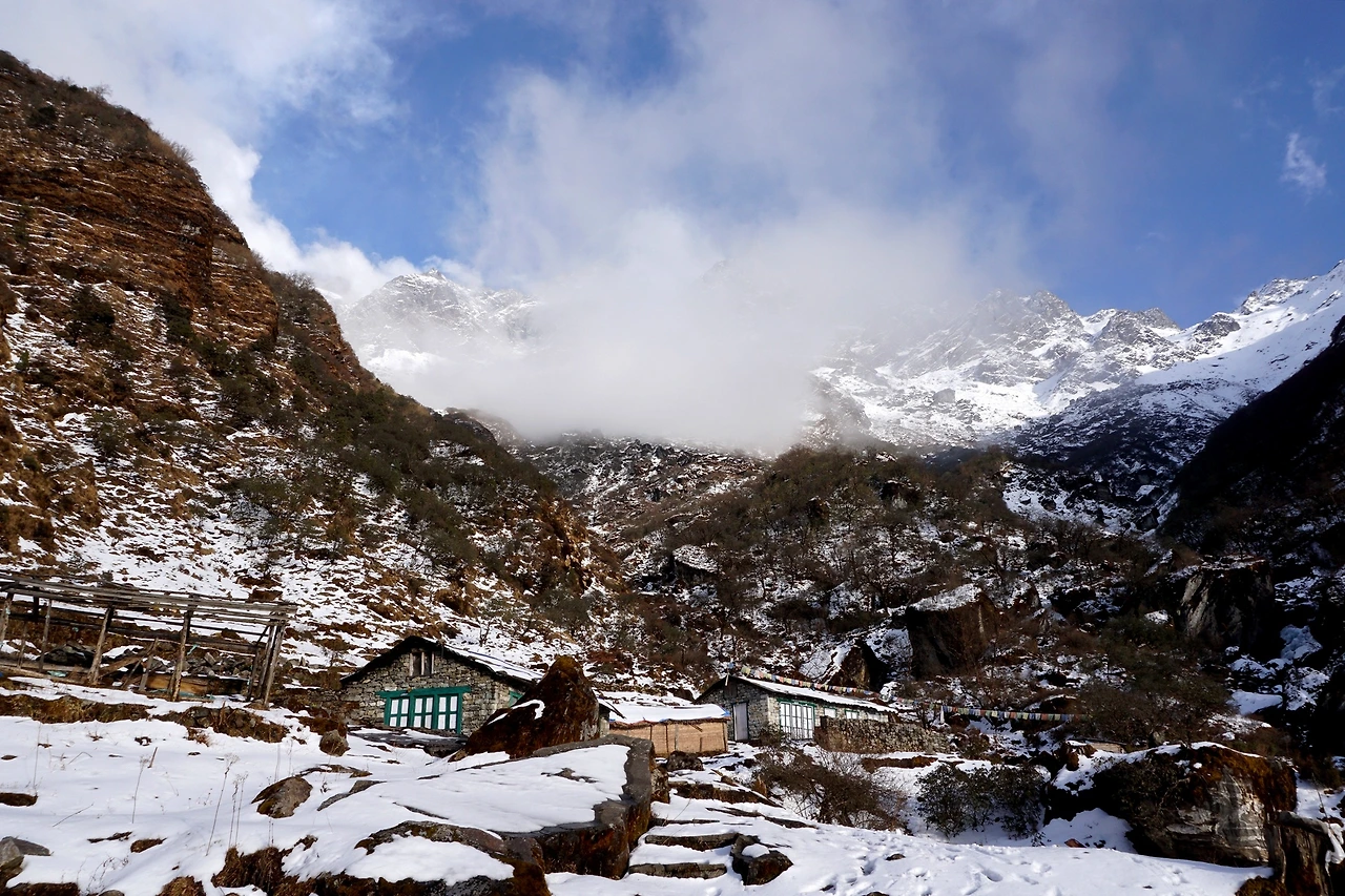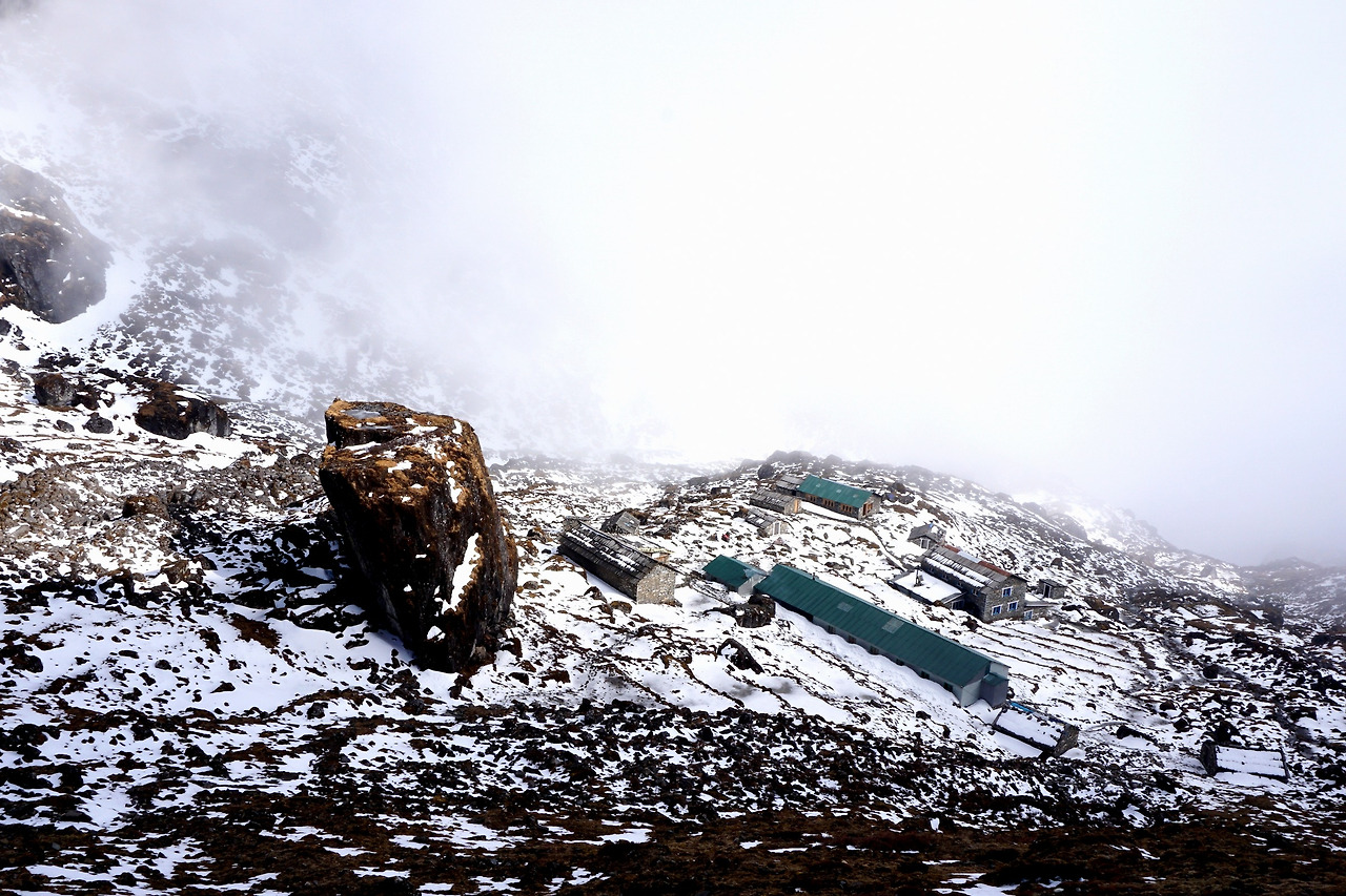 롯지는 생각보다 나쁘지 않았다. 몸을 녹일 공간도 있고, 침대도.. 있고, 음식이랑 차도 나름 구색이 다양했다. 가이드는 위로 올라갈수록 환경이 좋지 않을 거라고 했다. 아무래도 물자 조달이 힘들겠지. (돌이켜 생각해보면 딱히 그렇지도 않았다.) 뜨끈한 생강차로 몸을 녹이며 주변 풍경을 감상하다 보니 시간 가는 줄 몰랐다. 해가 지면서 기온이 뚝 떨어졌다. 더 추워지기 전에 눕는 게 좋겠다 싶었다.