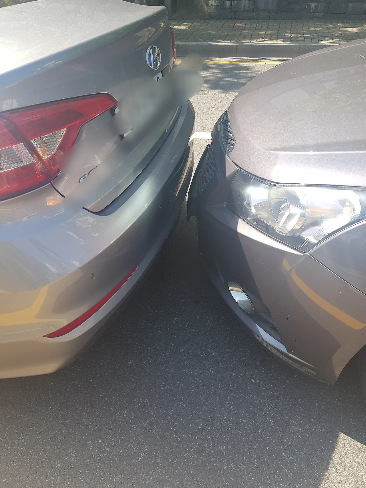 출근해야 하니 사무실로 가서 차를 확인해보겠다고 했다. 서로 네 차도 찍고 내 차도 찍고 휴대폰 번호를 주고받으며 헤어졌다. 사무실로 와서 환한 곳에 차를 주차하고 보니, 뭔가 뒷 범퍼가 조금 이상해 보였다. 기분 탓이겠지... 살짝이지만 스크래치도 생겼다.