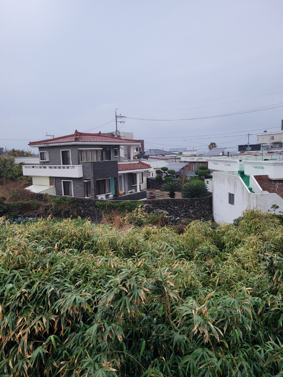 다음 날엔 하루 종일 비가 왔다. 원래 워크샵 일정이 있었던 토요일에 온다고 했는데 비가 하루 미뤄져서 그나마 다행이었다. 원래 올레길을 걸으려고 했는데 비가 와서 일정이 틀어졌다. 일단 빗소리를 들으며 멍하니 누워 있었다. 창밖으로 보이는 풍경이 예뻤다. J변호사님은 아침을 원래 안 먹는다고 하고, 나도 아침은 그릭 요거트나 시리얼 정도로 간단하게 먹는 편이라 11시쯤 나가서 아점을 먹기로 했다. 아무것도 급한 일 없이 늘어져 있는 아침이 기분 좋았다. 평소에는 매일 아침에 운동을 하고 출근을 하는 편이라 여유 있게 누워있을 짬이 없어서, 제주에서 쉬는 김에 이불의 온기를 맘껏 즐겼다. 빗소리를 더 듣고 싶어서 잠깐 창문을 열어놨는데 바람이 너무 차서 금방 다시 닫았다. 아무것도 하지 않고 있는 순간이 소중했다.
