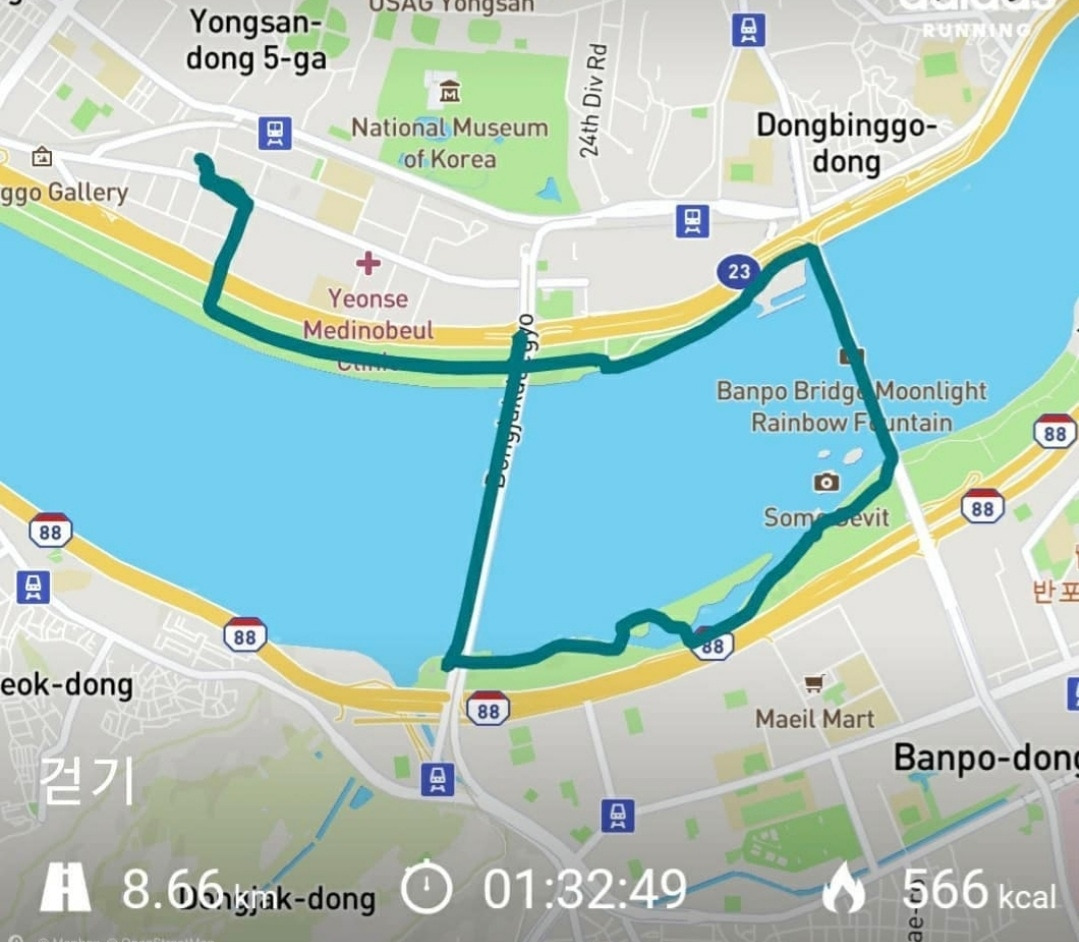 5. 4~5년 정도 꾸준히 마포대교~원효대교~한강철교~한강대교~동작대교~반포대교~한남대교~동호대교로 이어지는 서울 한강공원 구간을 걸으면서 나만의 걷기 지도를 완성했다. 그리고 60분 코스, 90분 코스, 120분 코스, 180분 코스 등 걷는 시간에 따라 나만의 맞춤형 코스를 설계해서 이름을 붙였다. 가끔 지인들이 한강공원을 같이 걷자고 찾아오면 먼저 이렇게 질문부터 한다. "얼마나 걸을 거야? 1시간? 2시간?"