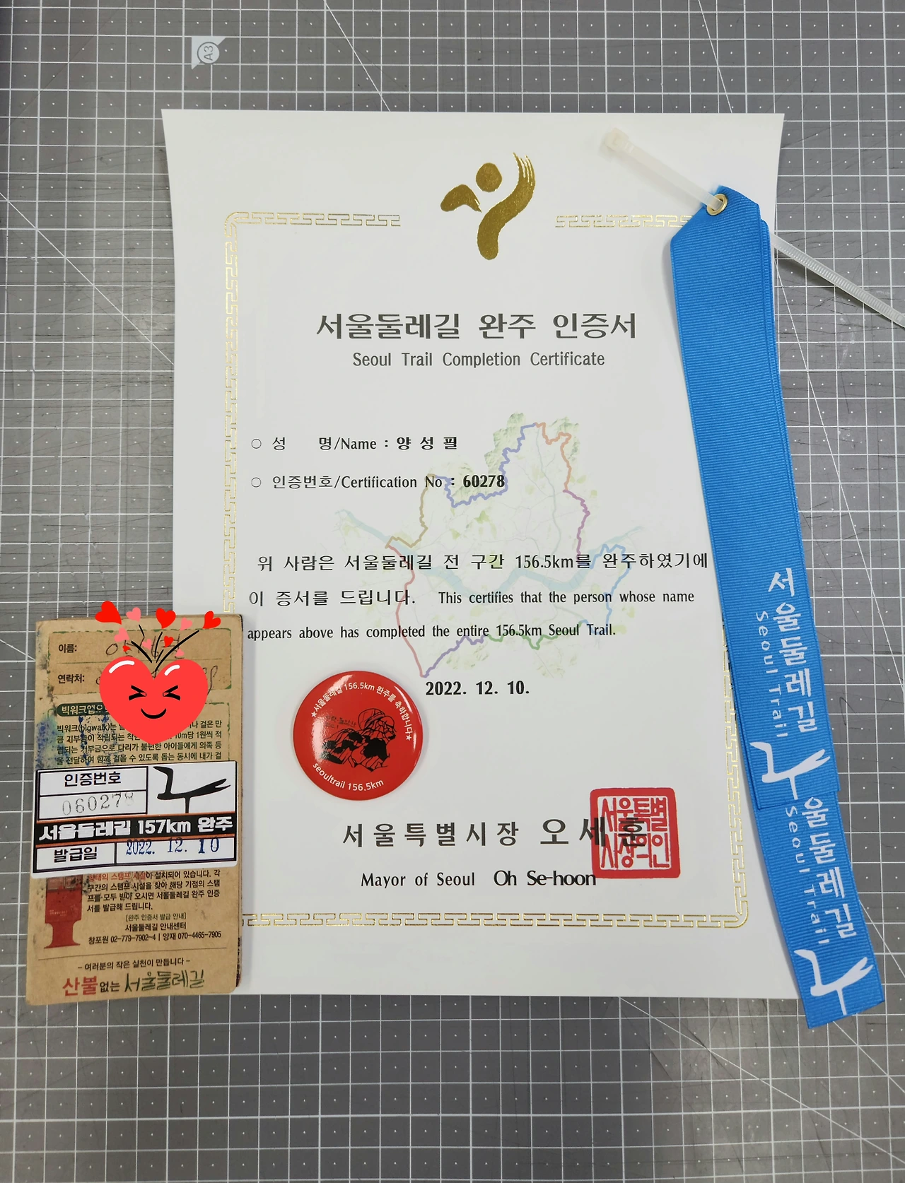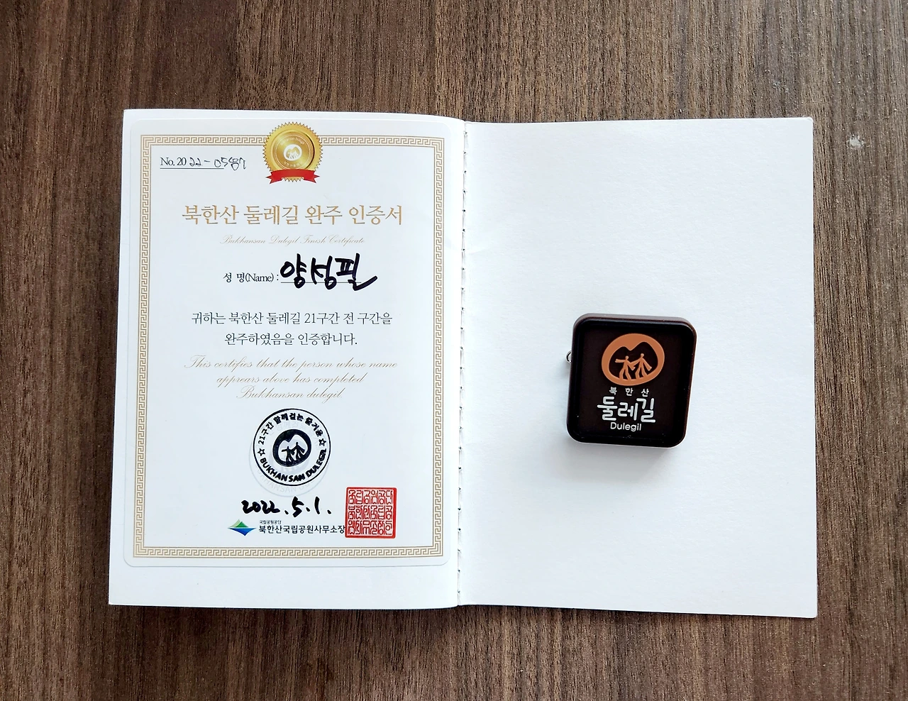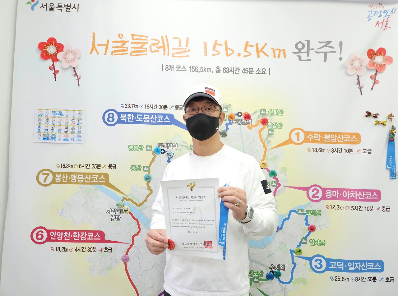 제주 올레길 완주 외에도 2021년 12월부터 2022년 2월에 걸쳐 <양평 물소리길> 6개 코스 56km, 2020년 4월부터 2022년 5월에 걸쳐 <북한산둘레길> 21개 코스 72km, 2022년 5월부터 12월에 걸쳐 <서울 둘레길> 8개 코스, 157km를 완주했다. 공교롭게 2022년에 무려 4개의 완주증을 획득했다. 걷기 스탬프 투어의 결실이 많아 행복한 한 해였다.