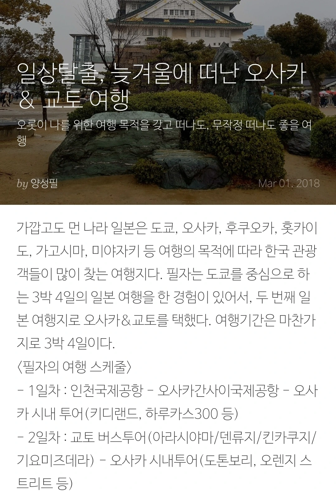 무작정 떠나기, 무계획으로 즐기기, 날짜별 시간별로 타임 테이블 만들기 등 여행을 즐기는 방법은 인구수만큼이나 다양하다. 나는 사전에 꼼꼼히 계획을 세우고 그 틀 안에서 여행을 즐기는 스타일이다.