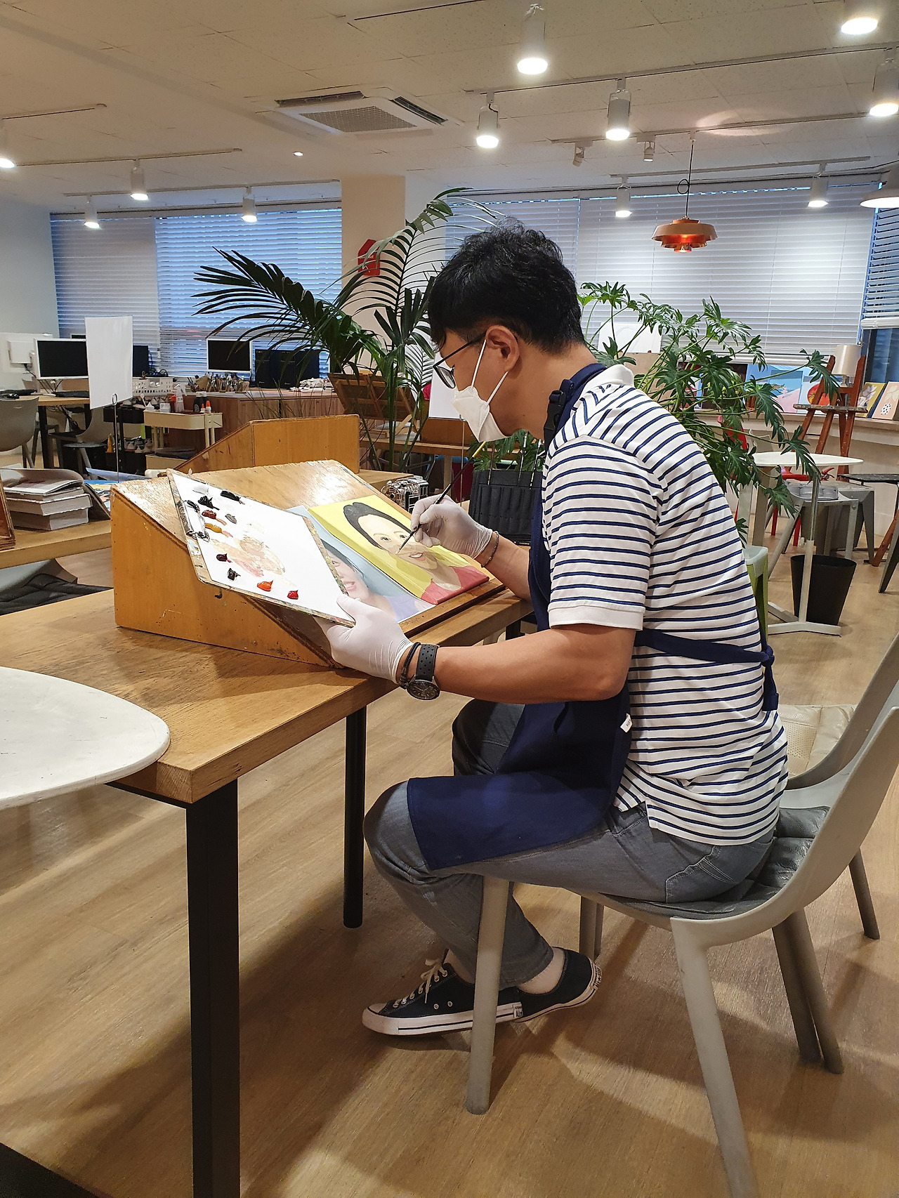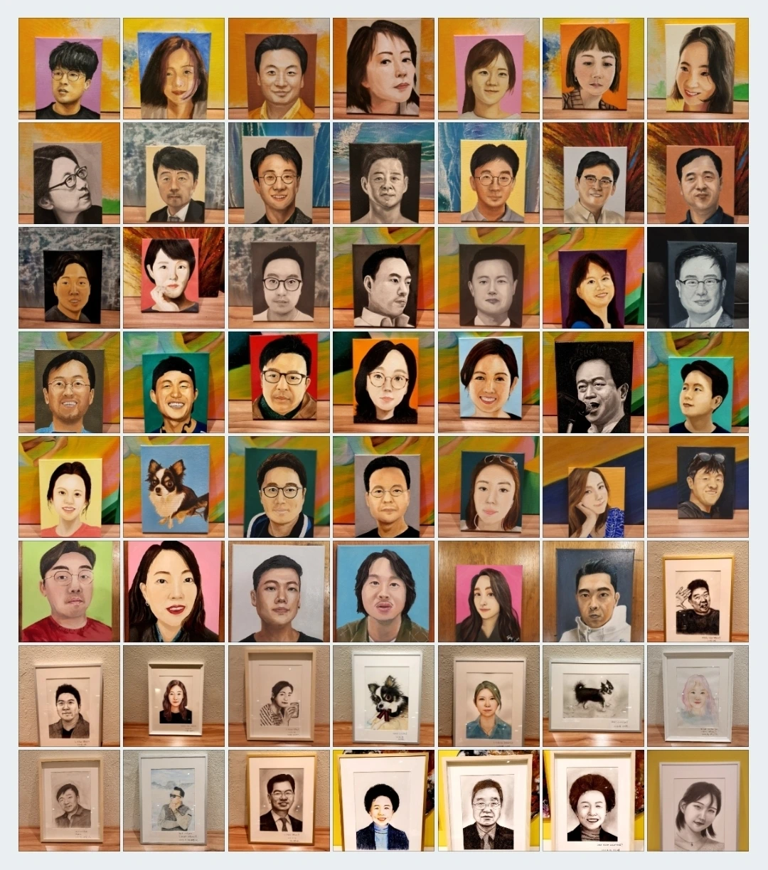 4. 딱 100명에게만 초상화 선물을 할 계획인데 2022년 12월까지 58개의 초상화를 그렸다. 앞으로 2년 정도 후엔 100개가 채워질 것 같다. 100호 선물 후엔 조금 특이한 전시회를 꿈꾸고 있다. 미리 그림을 전시해 놓고 사람을 초대하는 것이 아니고 선물 받은 사람이 그림을 들고 참여하는 콘셉트이다.