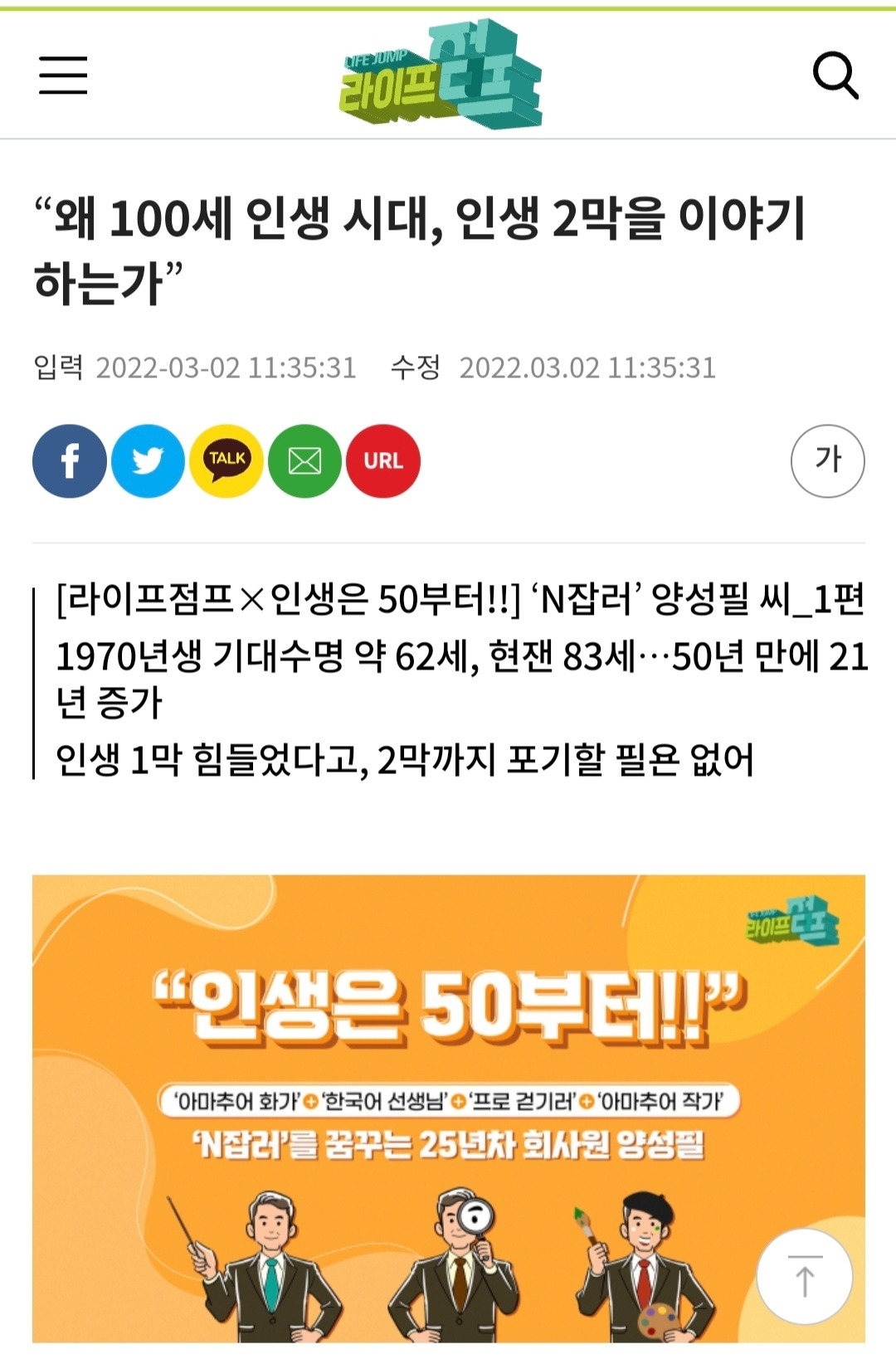 서울경제 라이프점퍼에 연재하고 있는 칼럼 인생은 50부터!!