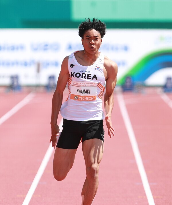 나마디 조엘진(이하 나마디) 선수는 2006년생으로 아프리카 나이지리아 출신 아버지와 한국인 어머니 사이에서 태어난 다문화가족 자녀입니다. 초등학교 5학년 재학 당시 코치의 권유로 육상을 시작했지만 어린 시절에는 TV 드라마 등 아역 배우로도 활동했으며, 본격적으로 운동을 시작한 건 김포제일중학교 2학년 때부터라고 합니다. 나마디는 학교와 김포시육상연맹으로부터 운동 환경, 식사, 훈련 등 전폭적인 지원을 받으면서 기록이 수직상승했습니다. 왜소했던 체격은 매년 10cm 이상 크면서 180cm 이상으로 훌쩍 자랐고, 멀리뛰기 선수였던 아버지의 유전자를 물려받아 유연성과 순발력은 타고났다는 평가를 받고 있습니다.