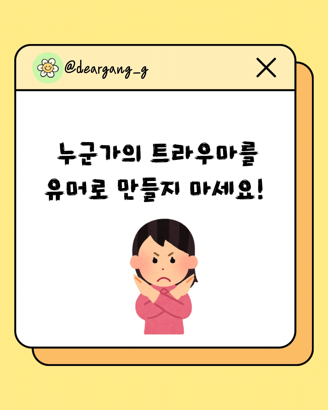 누군가의 트라우마를 유머로 만들지 마세요.